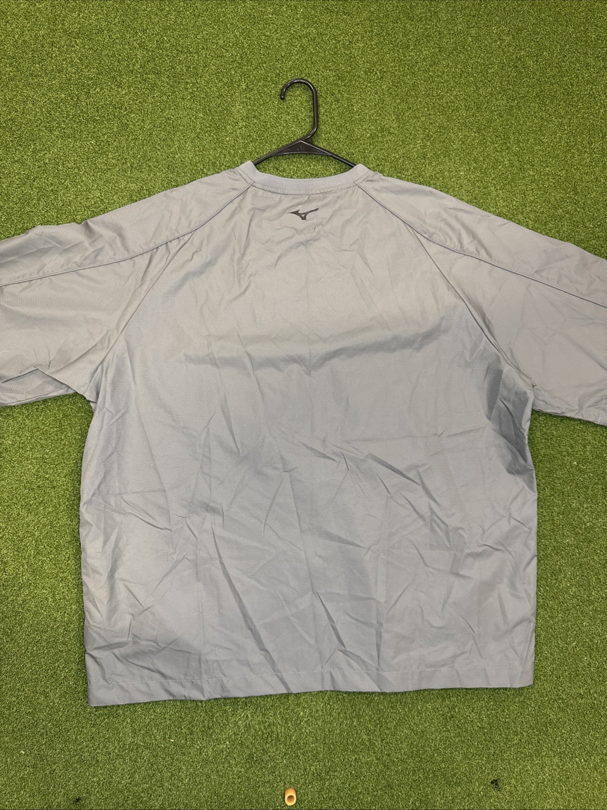 The Mizuno 1/4 Zip Baseball Windbreaker Pullover in men's size XL is a grey short-sleeve jacket made of polyester and nylon, perfect for activewear. It features a solid pattern, pullover closure, and 1/4 zipper accent. The windbreaker is designed for baseball performance, making it ideal for summer, fall, and spring seasons. It is machine washable and has a regular fit, making it a versatile choice for casual wear.