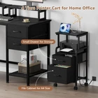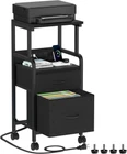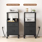 Printer Stand with Power Outlets, Mobile Printer Table with 2 Drawers, 4 Tiers Multi-Functional Rolling Printer Cart with Wheels for Home Office, Living Room, Black 【Black Printer Stand with Charging Station】This modern rolling small printer table has 2 power outlets and 2 USB ports for your electronics. A 6.5-foot cord ensures easy connection. Use this rolling printer cart conveniently and charge multiple devices while keeping your printer close (Size:15.74"D x 11.81 "W x 27.55 "H) 【Office File Cabinet with Drawers】The printer desk stand comes with 2 fabric drawers for small items and an extra bottom file drawer for A4 or Letter-size docs. It helps keep your workspace tidy, storing small supplies in the fabric drawer and important papers in the bottom one 【Flexible Rolling File Cabinet】Equipped with two types of footrests: lockable 360° swivel casters and leveling feet. You can choose whichever option suits you best - either flexible mobility or steady fixation 【Sturdy and Stable Table】This small printer shelf with storage is made of high-quality metal and upgraded fabric drawers for sturdiness. Its robust build can steadily support a printer and other items. It's a reliable addition to work or living spaces, offering functionality and durability 【Multiple USE Options】The 4-Tier printer stand with storage can be used as a home office cabinet, bedside table, sofa side table, nightstand, end table, corner storage shelf, lateral filing cabinet, etc. It's a versatile addition to different rooms, meeting various place and improving space functionality 【Easy Assembly & Great Service】We provide a clear assembly manual. Accessories are digitally-tagged for simple setup.You can find an assembly video on the product page for additional guidance. Please feel free to reach out to us for any problems, our efficient customer service team will answer your questions within 24 hours