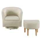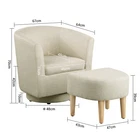Modern Accent Swivel Armchair Fabric Single Sofa w/Ottoman Chair for Living Room Features: Comfortable Stylish Modern Swivel Accent Chairs with Ottoman: DAZONE modern comfy accent swivel chair with tub barrel style backrest makes you relieve your tiredness, makes a perfect addition to your living room, bedroom, den, recreation area, guestroom, waiting room small spaces apartment, office or studio. Sturdy Barrel Chair with Ottoman: This DAZONE accent chair for living room make of solid wood legs, soft sponge and sturdy wooden frame to ensure durability and stability of this reading chair The heavy duty 360-degree swivel base features Made of high-quality iron with steel beads accent base detail & allows great flexibility in the home. Upholstered accent swivel chair for bedroom: Ergonomically designed soft armrest, comfortable and breathable sherpa fabric of this DAZONE accent sitting chair to enjoy your comfy modern club chair style in your space and adds a touch of beauty to your home Easy to Install Living Room Chairs: It is esy to set up this small comfy corner chair within minutes. Simple assembly is required. Only need to screw the solid wood legs to DAZONE arm chair with bare hands and done Size & Load Capacity of this sherpa Chair and Ottoman Set: 26.4"(L)"*25.2"(W)*27.6"(H) ; ottoman:18.5"(L)*17"(W)*15.4"(H) ; Iron Plate Size:7.87"(L)"*7.87"(W)*0.79"(H), and weight capacity: 330 lbs. Please note it. Specification: Color: Beige Leg Material: Solid Wood Frame Material: Solid Wood Style: Curved Back Barrel Swivel Chair with Ottoman Chair with Ottoman Material: Iron + Wood + Sherpa fabric +Sponge Assembly Required: Yes(only Ottoman leg) Seat Depth:19.1" Seat Height:18" Weight: 46 lbs Curved Backrest Chair: 26.4"(L)"*25.2"(W)*27.6"(H) Ottoman: 18.5"(L)*17"(W)*15.4"(H) Iron Plate Size: 7.87"(L)"*7.87"(W)*0.79"(H) Weight capacity:330lbs Package Included 1* Swivel Accent Chair with Ottoman Set Contact us: Payment: Shipping: Warranty Return Contact us: We have always been trying to provide the best service and reliable products for every customer, however, accident may happen sometimes, please contact us to resolve any issue before leaving a negative feedback. Payment: 1. All payments must be prepaid before shipping. 2. We only accept payment via PayPal. Please kindly check if you can do the payment via PayPal before placing an order. Shipping: 1. Item will be shipped same business day if paid 4 pm EST 1 pm PDT (except weekends and holidays) and shipped from US. 2. Orders from the United States will all be shipped out via starnding shipping or economy shipping. The shipment usually takes 3-7 business days(Saturday and Sunday excluded), if you need the item urgently, please contact us for detail before purchase. Orders from overseas will be shipped via DHL Express, 3-5 business days. 3. Local pick up is not available. Warranty . The warranty shall not apply to the following circumstances: a) Damage caused by undue wear&tear, misuse, improper installation or operation, neglect, accidents. b) Damage caused by natural disasters, flood, fire, lightning or pollution. c) If item was opened, any parts removed or repaired by any unauthorized person. Return (1).We stand behind our items and offer 60 days warranty. All items are in brand new condition unless specified otherwise elsewhere in the description. (2).All returns - defective or otherwise - have to be preauthorized. Please contact us to get an authorization and returning address before sending the item back.If an item is returned because of an undeliverable shipping address, buyer agrees to pay the cost for re-shipment. (3).Please note that If the return/replacement is not a result of our mistake (not defective or wrong item), the buyer is responsible for return shipping, as well as a 20 percent restocking fee. (4).Replacement or refund will be made upon receipt of the returned item. If you do not want to wait for the replacement, you can just reorder one and then send the first one back for a refund.