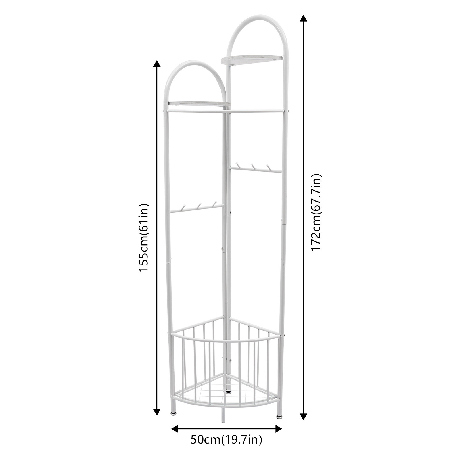 Modern Corner Clothing Rack Stand Bedroom Coat &Hat Rack Holder w/Storage Basket Description Description A great coat rack is not only a caring steward for your clothes, but also an artistic accent to your home life. High-quality materials and exquisite craftsmanship make our corner coat rack sturdy and durable. The strong load-bearing capacity allows you to use it with confidence. With its fashionable appearance, it can embellish your room. In short, it is your storage assistant, creating a tidy home environment for you. Key Features Sturdy and Durable: Made of iron with a spray painting process, this product is wear-resistant , corrosion-resistant , and sturdy, ensuring your long-term use. Storage Assistant: The top two partitions allow you to place perfume, potted plants, and handicrafts(all are not included). The storage basket at the bottom can be used to store your clothes, shoes, or umbrellas(all are not included). 6 hooks with round ends allow you to hang scarves, keys, bags, and hats(all are not included). The curved clothes hanging pole can hang clothes, allowing you to store your clothes and items in zones. Strong Load-bearing Capacity: The thickened iron pipe and triangular structure make this product capable of bearing about 66.14 lbs, allowing you to use it with confidence. Space-Saving: It adopts a 90-degree corner design, which fits the wall corner and saves space. Fashionable Appearance: The top two fan-shaped designs with different heights, golden color tones, and smooth lines give this product a fashionable appearance, adding personality and beauty to your room, and creating a fashionable corner space design. Assembly in a Breeze: The simple structure and complete accessories allow you to easily and quickly assemble this product, saving time and effort. Effortless Cleaning: Thanks to the smooth surface, simple structure, and open design, you can easily wipe off the dirt on it with a soft cloth. Protective Package: To prevent the product from being damaged during transportation, we packed it with bubble bags to protect your products to the maximum extent possible. Good Customer Service: We stand behind all our guests and look forward to assisting you with your purchase. It is our pleasure to answer your confusion and questions. The end of the story between us is not "we sell and you buy". Details Open Frame: It facilitates accessing and placing clothes and items. Adjustable Foot Pads : 4 foot pads can be adjusted to adapt to uneven ground. Elevated Bottom: It makes it convenient for you to clean the bottom. Smooth Edge: The rounded and smooth edges not only add to the aesthetics of the product but also improve the safety of use. Application It can be used in hallways, bedrooms, living rooms, bathrooms, entryways, foyers, study rooms, laundry rooms, offices, clothing stores, apartments, hotels, dormitories, etc. It can be used to hang coats, scarves, keys, hats, school bags, handbags, wallets, suits, etc. It can be used to store clothes, shoes, or umbrellas, and can be used to place perfume, potted plants, handicrafts, etc. Specification Color: White Style: Modern Material: Iron Process: Spray Painting Assembly Required: Yes Number of Hooks: 6 Number of Plates: 2 Mount Type: Free Standing Total Load-bearing Capacity: About 30kg/66.14lbs Product Size(L*H): 50*172cm/19.7*67.7in Package Size: 92*37*11cm/36.22*14.57*4.33in Gross Weight: 4.5kg/9.92lbs Net Weight: 4kg/8.82lbs Package Included 1* Corner Coat Rack All Accessories for Installation Notes This product does not include other items. Please use this product within the load-bearing range. Please allow the slight color difference caused by the shooting light and the 1-3 cm error due to manual measurement, and make sure you do not mind before ordering. Payment Delivery details Terms of sales About us Contact us Payment We accept ebay payment 。 Fees such as import duties, taxes are not included in the item price or shipping costs. These charges are the buyer's responsibility. Delivery details Shipping: 2-9 working days to: USA Terms of sales We maintain high standards of excellence and strive for hundred percent customer satisfaction. Feedback is very important to us. We hope that you contact us immediately before you give neutral or negative feedback, so that we can address your concerns. It is impossible to address issues if we do not know about them! About us Your satis faction is our ultimate goal. We work hard to earn your trust and future business. Our certified technicians have tested each item before shipping. The unit comes with 1 year limited warranty on all manufacturing defects. a) If you receive a defective item, you may return it or ask for a discount. Please contact us within 14 days after you receive the package. b) What you returned must be intact and in its original packaging as re? u. Customer is responsible for shipping costs of the returned item. c) We will cover the cost of shipping back t with the shipping rate indicated in the registration page. We will send you a new unit or refund the full payment you paid. Thank you. Contact us Business Hour Business Hour: Monday To Friday: 8:30 AM to 5:00 PM (Beijing China time) Due to time zones, our reply to your questions may not be immediately. But within above working time, we will reply your email within 24 hours. If it's non-workdays, please kindly be patient and wait till Monday. Please contact us with ebay message. Please feel free to contact us if you have any questions. Monday To Friday: 8:30 AM to 5:00 PM (Beijing China time) Due to time zones, our reply to your questions may not be immediately. But within above working time, we will reply your email within 24 hours. If it's non-workdays, please kindly be patient and wait till Monday. Please contact us with ebay message. Please feel free to contact us if you have any questions. Brand Unbranded Type Coat & Hat Racks Color White Style Modern Material Iron Process Spray Painting Assembly Required Yes