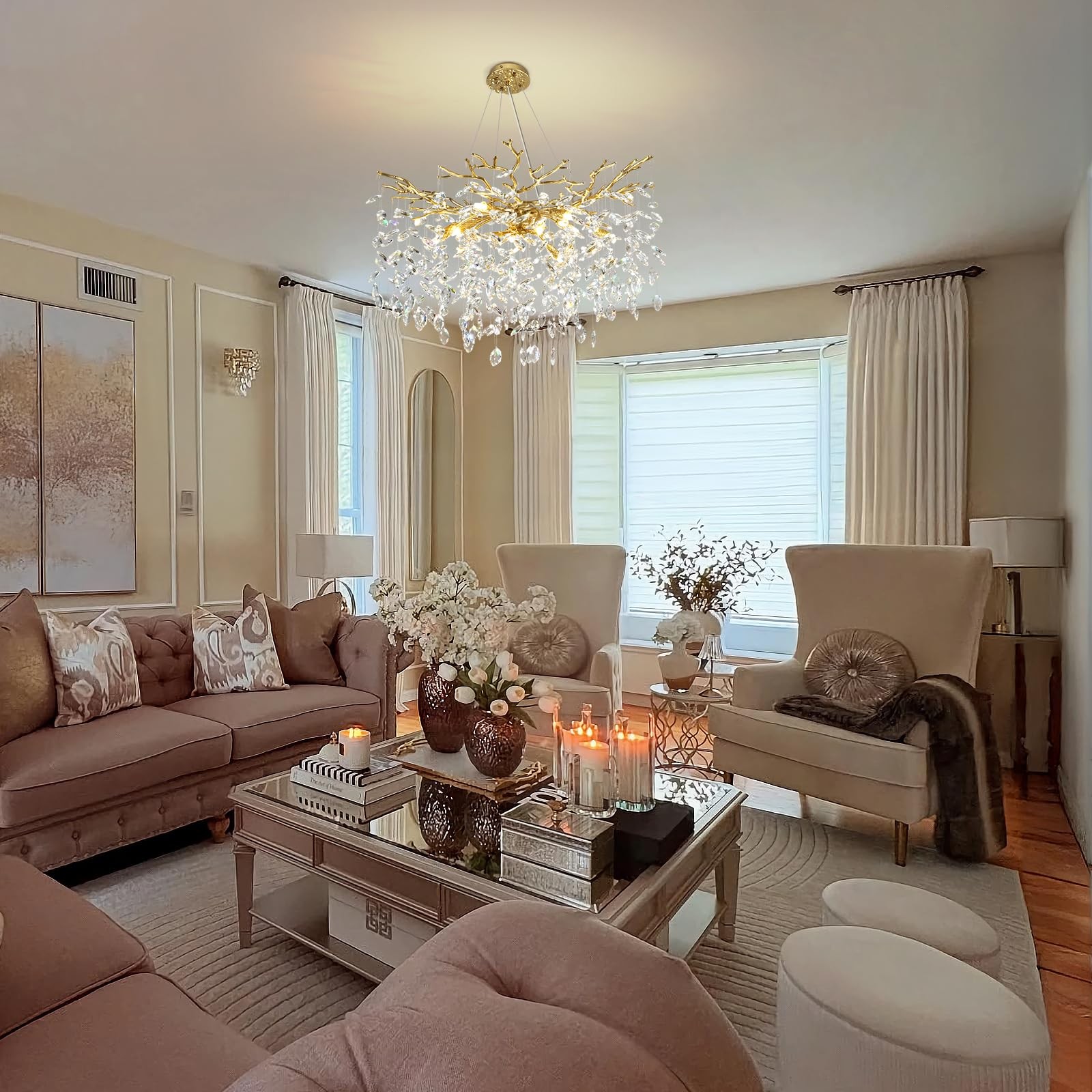 tree branch chandelier tree branch chandelier tree branch chandelier chandelier chandeliers for dining room chandeliers dining room chandelier modern chandelier chandelier for bedroom crystal chandeliers chandelier crystals crystal chandelier chandelier for living room kitchen chandelier dining room chandelier over table modern chandeliers for dining room kitchen chandeliers over table living room chandelier chandelier light dining chandelier crystal chandeliers for dining room high ceiling chandelier chandelier for dining room entryway chandelier Modern Crystal Chandelier: Transform your living space into a captivating masterpiece with our contemporary gold crystal tree branch chandelier. This stunning piece is designed to impress, featuring a unique tree branch-inspired structure adorned with shimmering TOP K9 crystals that create a mesmerizing interplay of light and shadow.All of our crystal chandeliers are crafted with premium-grade K9 crystal (industry's top-tier standard), not ordinary artificial crystal. Crystal Chandelier Light Source: This contemporary round branch crystal chandelier does not include light bulbs. It requires 10 G9 bulbs, which can be chosen according to your preferred color temperature to complement your home décor. We generally recommend using 3000K warm white bulbs for a cozy ambiance. The chandelier is dimmable when paired with dimmable bulbs and a compatible dimmer switch. Humanized Installation: The modern gold crystal chandelier measures 30 x 30 x 15.5 inches, with an adjustable cable length of 0-66 inches to suit your space. The chandelier’s branches are crafted from lightweight aluminum alloy using one-piece molding, providing both durability and adequate support. Each branch is removable for easy assembly—simply hang the crystals from the branches. (Note: The branches have distinct sides; please install the chandelier with the front side facing upward. Refer to the provided installation instructions for detailed guidance.) Application Space: This round crystal chandelier for the dining room resembles a golden tree, illuminating and warming the entire house while also serving as a beautiful decorative light. The ceiling canopy of the chandelier is compatible with both flat and sloped ceiling installations. In addition, it is perfect for the living room, kitchen island, bedroom, foyer, bathroom,high ceiling space, and any other space. Our Promise:We Provide 5 Years Promise For All Chandeliers, Including Replacement Of Lost Or Damaged Parts. If You Encounter Any Problems In The Installation Process Can Contact Us In Advance, We Will Reply You In Time And Communicate With The Technical Department To Help You Solve, Please Be More Patient, You Will Love It After Installation!