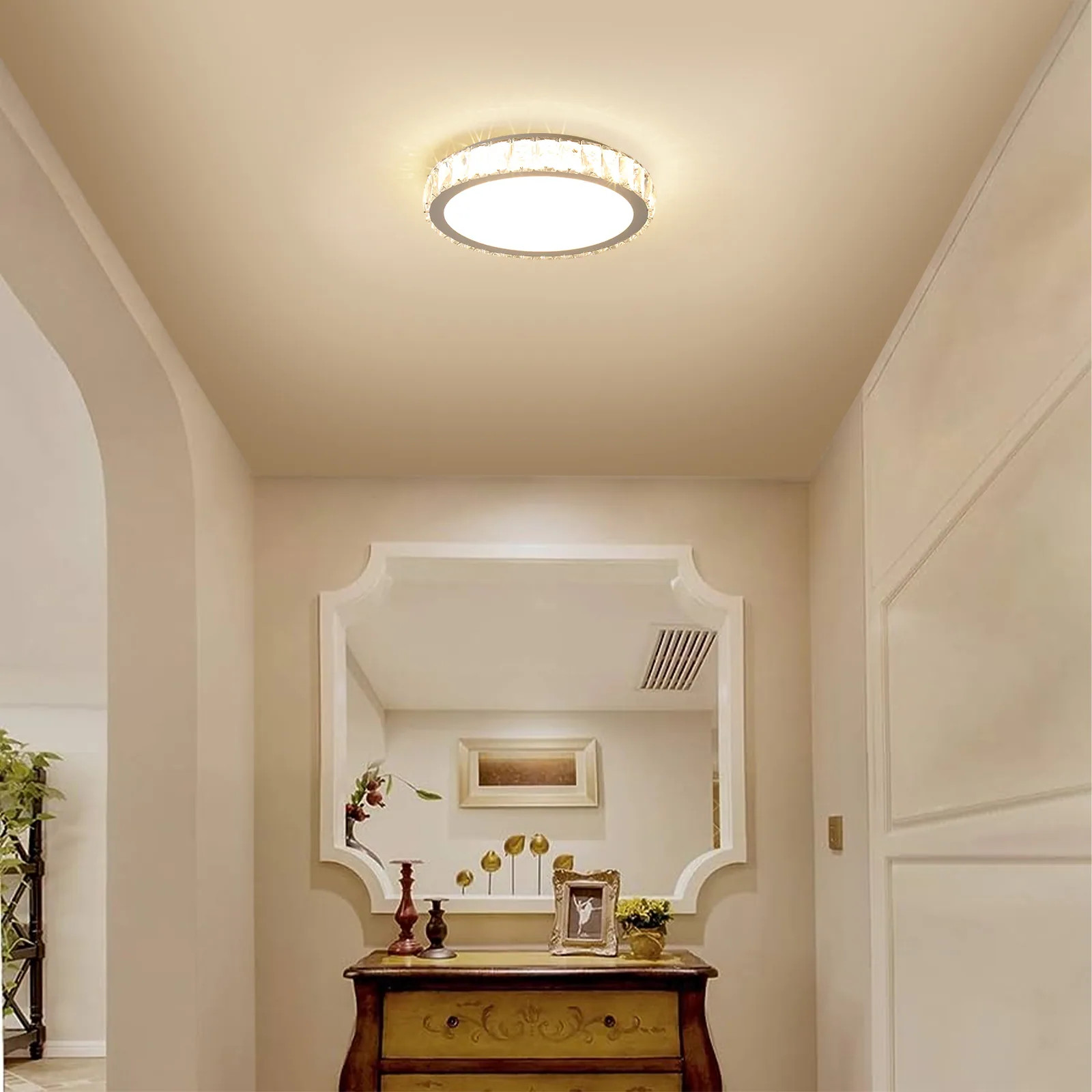 Modern Embedded Crystal ChandelierMODERN DESIGN:The clever combination of metal and crystal, the simple shape is full of artistic atmosphere, can decorate the whole room and make the whole room bright. Ideal Decor Luxurious, elegant, modern industrial retro design to add a pop of color to your space. This crystal lamp is the best element to create a relaxing and peaceful mind atmosphere, put it in the room and you will get an amazing romantic and charming atmosphere.ENERGY EFFICIENT: 38-Watt low power consumption LED flush mount ceiling lights with 1271 lumen output is equivalent to 100W incandescent. Switch to ceiling LED lights and start saving on your electricity bill ! With adjustable color temperature options ranging from 3000K to 4000K to 5000K.DURABILITY: Made with premium Free Shipping Over $49.99* Details Modern Embedded Crystal Chandelier Product Description: Modern Embedded Crystal Chandelier MODERN DESIGN:The clever combination of metal and crystal, the simple shape is full of artistic atmosphere, can decorate the whole room and make the whole room bright. Ideal Decor Luxurious, elegant, modern industrial retro design to add a pop of color to your space. This crystal lamp is the best element to create a relaxing and peaceful mind atmosphere, put it in the room and you will get an amazing romantic and charming atmosphere. ENERGY EFFICIENT38-Watt low power consumption LED flush mount ceiling lights with 1271 lumen output is equivalent to 100W incandescent. Switch to ceiling LED lights and start saving on your electricity bill ! With adjustable color temperature options ranging from 3000K to 4000K to 5000K. DURABILITYMade with premium stainless steel and crystal, these eye-catching ETL Certified flush mount lights for ceilings will illuminate your home for many years to come. *High quality - Made of a high-quality metal frame, first-class crystal, processed with excellent technology, safe, durable, anti-corrosion, and non-fading. *High-end K9 Crystal - Made of exquisite three-dimensional octagonal bead pattern featuring crystal clear crystals that refract the light beautifully. *Great light transmission - With an anti-glare shade, the chrome crystal chandelier has the best light transmission, light can be refracted to the ceiling, making the lighting full of beauty. *Excellent LED beads - This recessed ceiling light comes with LED beads, eliminating the need to purchase additional bulbs. The comfortable light source creates a bright, spacious, free, and relaxing atmosphere, providing enough brightness for your space. *3 color temperatures - This ceiling light is available in 3 color temperatures, warm white (3000K), natural white (4500K), and daylight white (6000K). *Energy-saving LED - The modern LED ceiling light recessed installation is made of LED chips, which saves up to 85% energy compared to halogen lights, greatly reduces flicker problems, and has a lifespan of over 50,000 hours. Product Features: 1. SHINING K9 CRYSTAL 2. MODERN AND LUXURIOUS STYLE 3. EASY AND QUICK INSTALLATION As per inquiry or aftersales serviceplease contact us Yoki0107@163.com
