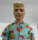 Careers / Fashionistas Era Ken Doll. Doll is a Pale skinned Ken with standard blonde hair that curls up. Doll is either a standard Fashionistas or a Careers doll. He is in a pair of shorts and a watermelon printed shirt. He is preowned and has been played with. There is wear. He has some clothes and shoes. The doll has no chews, no tears, just very few light scratches and light paint wear on hair. Please see all the photos for condition. Nonsmoking home but we have pets.