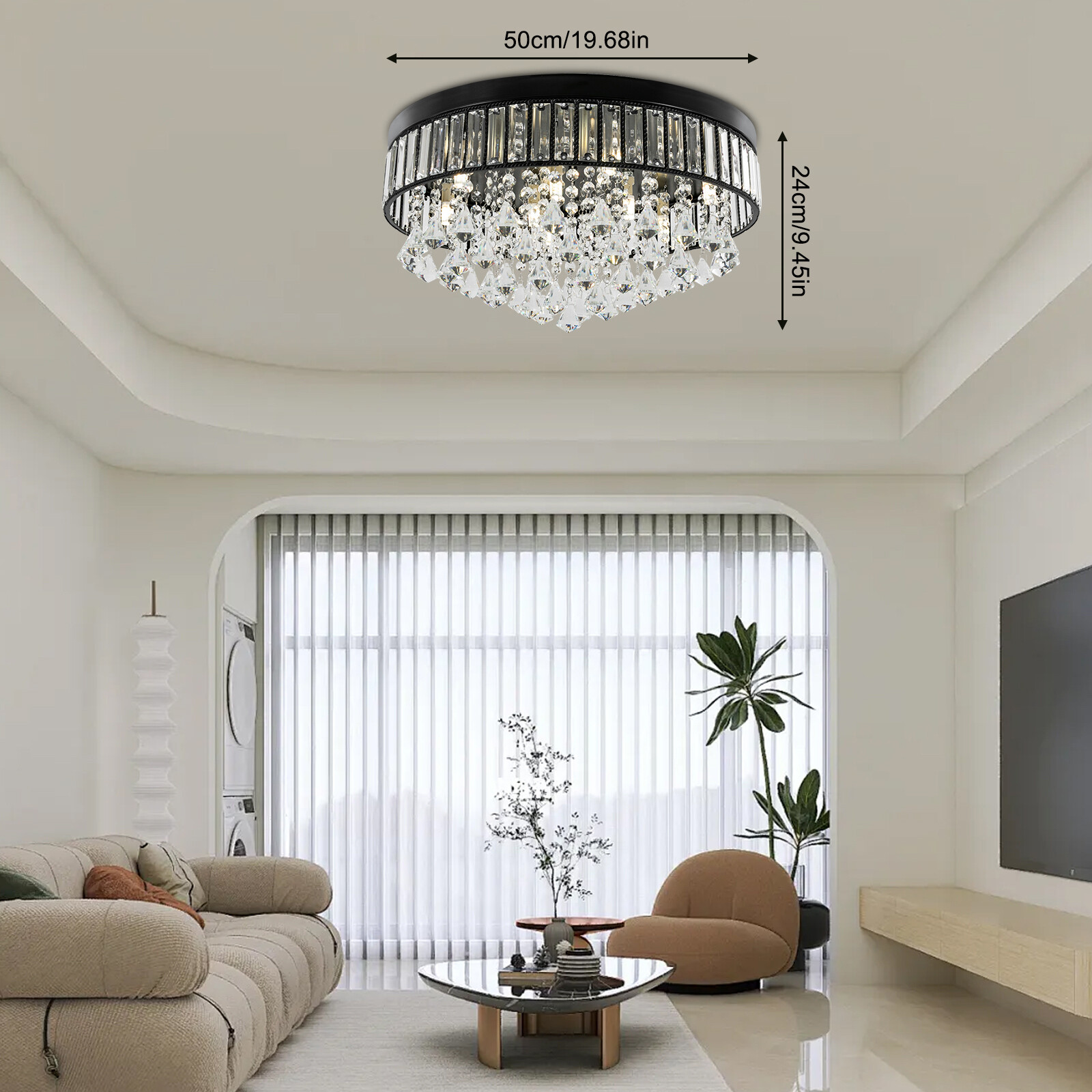 Specifications Color: Black Shape: Round Style: Modern Material: Iron, Crystal Process: Bake Paint Assembly Required: Yes Mount Type: Ceiling Mount Efficiency: E Light Source: 9*G9 Bulbs(Not Included) Single Bulb Suitable Power: <25W Illumination Area: 20m²/215.28ft² Product Size(D*H): 50*24cm/19.68*9.45in Package Included 1*Flush Mount Ceiling Light 1*English Manual Other Needed Accessories Crystal Ceiling Light Modern Round Flush Mount Crystal Chandelier Bake Paint Description~~ Description In every corner of the home lies the secret to enhancing the quality of life. When art meets light and shadow, this eye-catching round ceiling light is born. The product comes with 9 G9 lamp holders and crystal pendants with exquisite craftsmanship, which is not only the messenger of lighting but also the accent of space, with the flow of light and shadow magic, caressing every inch of the warmth of the home. Key Features Build to Last: The high-quality iron fixture, gorgeous crystal pendants, and the bake paint process can effectively protect the product from corrosion, rust, and abrasion, keeping the product glossy and practical for long-term use. Stylish Appearance: Its black tone paired with the sparkling crystal pendant not only presents elegant style but also makes this product a unique and attractive artwork in your room, whether the light is on or off. Dimming Compatible: The product is compatible with dimmable bulbs(not included) and corresponding controllers(not included) so you can prepare them yourself to control the color and brightness of the lights to get your favorite atmosphere. Assembly in A Breeze: With complete accessories and detailed English instructions, you can easily hang the crystal pendants on the light body and enjoy the assembly process. Safety Guarantee: The product comes with a grounding wire, which can ensure the safety of the product's daily electricity use and prevent you from being electrocuted when you touch it. Protective Package: To prevent the product from being damaged during transportation, we packed it with foam to protect your products to the maximum extent possible. Ideal Gift: Its stylish appearance and excellent lighting performance make it an ideal housewarming gift for your families, colleagues, and friends. Customer Service: We aim to provide quality products and services. If you have any problems, please feel free to contact us. We will reply and solve the problem for you as soon as possible. Details Rounded Edges: They can protect your hands from getting scratched during the cleaning and installation. G9 Lamp Holders: The product can install 9 G9 bulbs to provide you with an excellent lighting effect. In addition, they are compatible with various types of G9 bulbs such as halogen bulbs and LED bulbs. Application It is suitable for the hallway, living room, cafe, country house, study, bedroom, children's room, bar, hotel, restaurant, balcony, etc. Specifications Color: Black Shape: Round Style: Modern Material: Iron, Crystal Process: Bake Paint Assembly Required: Yes Mount Type: Ceiling Mount Efficiency: E Light Source: 9*G9 Bulbs(Not Included) Single Bulb Suitable Power: <25W Illumination Area: 20m²/215.28ft² Product Size(D*H): 50*24cm/19.68*9.45in Package Included 1*Flush Mount Ceiling Light 1*English Manual Other Needed Accessories Notes Please check the dimensions of the product before ordering to ensure it fits your home and you need to prepare bulbs yourself. Please follow the manual to install this product and pay special attention to the safety tips inside. Please do not install the lamp next to the air conditioner or heater, so as to avoid rusting due to moisture, which will affect the service life of the lamp. Please wear electric insulation gloves(not included) and avoid scratching the surface of the lamp plate and the electric wire when installing. Please make sure that the power supply has been cut off before installation, and conduct a power test before installation. Please install it by someone with an electrical license if necessary. Please use the lamp within the applicable voltage range and clean lamps regularly. Please cut off the power supply when you clean the light or replace light bulbs. Please do not touch the light source(not included) or look directly at the lit light source when the fixture is turned on, and keep flammable materials away from the light source. Please allow the slight color difference caused by the shooting light and 1-3cm error due to manual measurement, and make sure you do not mind before you order. tu1 Payment Delivery details Terms of sales About us Contact us Payment We accept ebay payment 。 Fees such as import duties, taxes are not included in the item price or shipping costs. These charges are the buyer's responsibility. Delivery details Shipping: 2-9 working days to: USA Terms of sales We maintain high standards of excellence and strive for hundred percent customer satisfaction. Feedback is very important to us. We hope that you contact us immediately before you give neutral or negative feedback, so that we can address your concerns. It is impossible to address issues if we do not know about them! About us Your satis faction is our ultimate goal. We work hard to earn your trust and future business. Our certified technicians have tested each item before shipping. The unit comes with 1 year limited warranty on all manufacturing defects. a) If you receive a defective item, you may return it or ask for a discount. Please contact us within 14 days after you receive the package. b) What you returned must be intact and in its original packaging as re? u. Customer is responsible for shipping costs of the returned item. c) We will cover the cost of shipping back t with the shipping rate indicated in the registration page. We will send you a new unit or refund the full payment you paid. Thank you. Contact us Business Hour Business Hour: Monday To Friday: 8:30 AM to 5:00 PM (Beijing China time) Due to ti