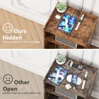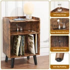 【Ideal Record Player Stand】Record stand give your living room or entertainment space a retro look . Fit for small than 15.6"-19.7" vinyl record player, This stylish end table has three storage areas. The top layer holds the turntable, the middle layer holds audio accessories, and the bottom divider section holds vinyl records. Perfect for storing vinyl records, albums, magazines, etc. It can be used not only as a vinyl stand , but also as a bedside table,nightstand and side table. 【Sturdy & Decorative Construction】Record player stand with storage is made of laminated MDF and particleboard that will last for years;With the mid-century inspired black metal divider for a fun, retro look. Record player table with solid wood decorative legs, beautiful and solid. The smooth surface can be easily cleaned with just a damp cloth. 【Record stand with Charging Station】Record table equipped with charging station contains 2 AC outlets and 2 USB ports. You can easily charge your cell phone, computer, and other electronic devices on the vinyl record stand .Built-in charging station design is not only convenient for charging, but also makes the side table neat and orderly. 【Portable and Space Saving】Turntable stand allows it to be cleverly installed in any small to medium-sized space, such as by a sofa, in the corner of a room, next to a guitar, etc. This vinyl record player stand only takes up a small space, help you to organize all your vinyl records, albums, CDs, it will be easy to find out what you want to listen.Assembled dimensions: 29.7"H x 19.7"W x 15.7"D. 【Easy to Assemble】End table equipped with a detailed but easy instructions and installation tools. Installation can be quickly finished even by greenhand. Recommended installation by two adults. Scratch-proof feet for the small side table allow dragging it around without damaging the underlying tiles and floor. 【Worriless After-sale Service】End table are made of premium laminated MDF and particleboard that will last for years When you receive the package if you have any issue please contact us freely.