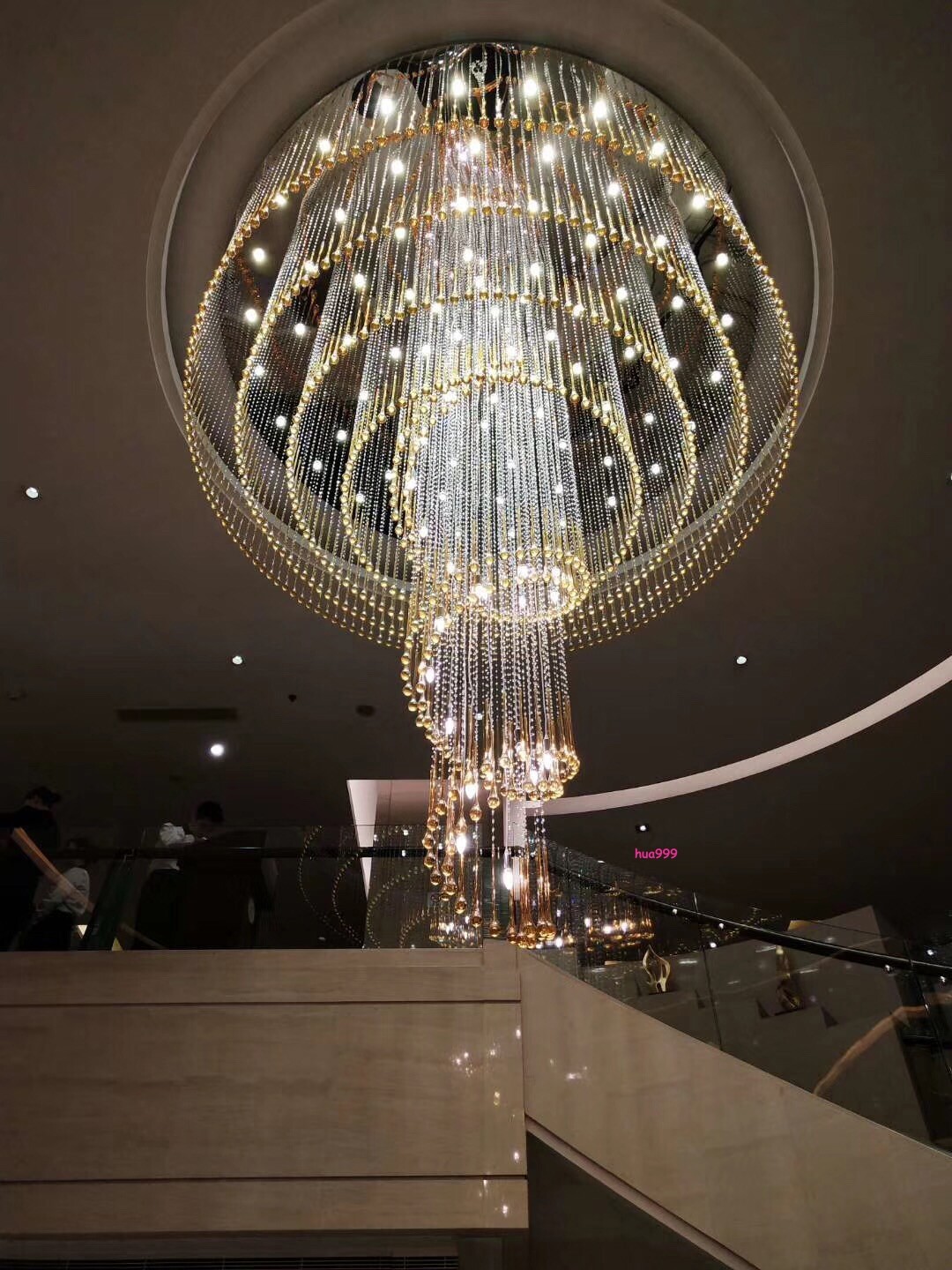 $ 38.11LED villa hall stairs light luxury crystal long Chandelier iving room black lamp
