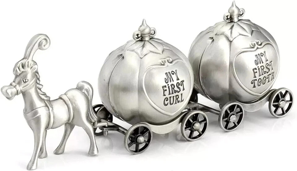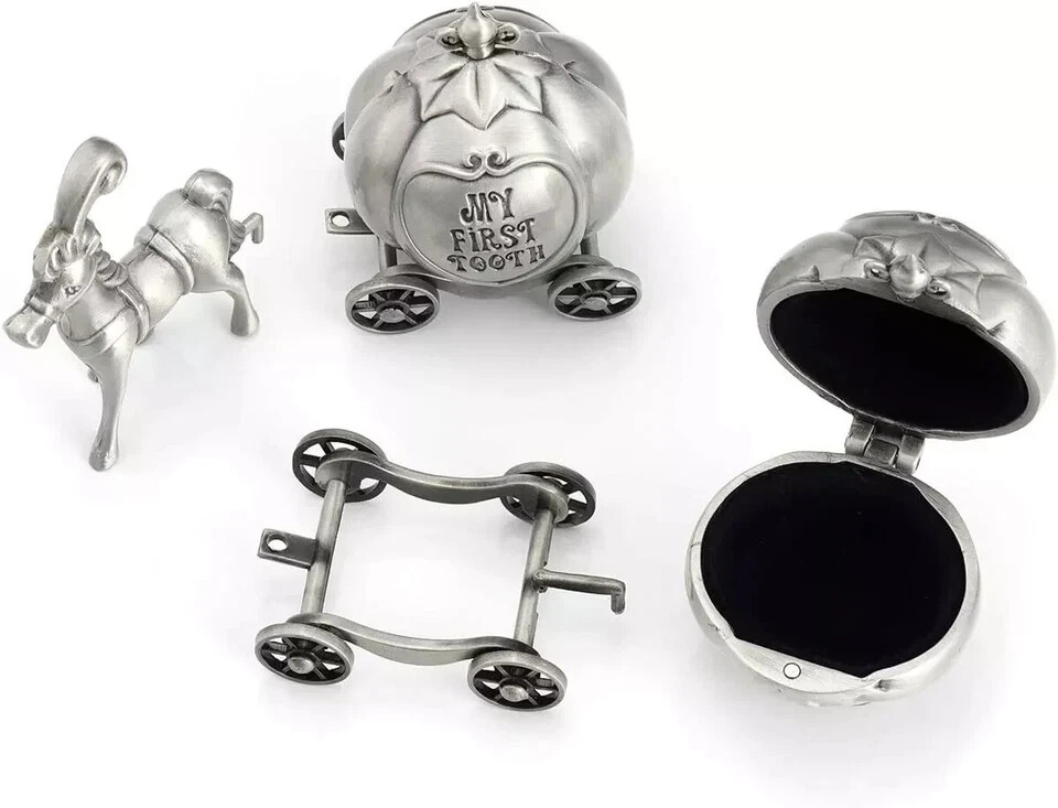 100% Money Back Guarantee if you are not satisfied with your purchase! ___________________ Description: Whole Size: 5.1"(L) x 1.5"(W) x 2.1"(H); Pumpkin Carriages Size: 1.5" wide x 2" tall, please pay attention to the size before order. Packaged in a gift-ready plain silver paper box and wrapped in tissue paper and enclosed in a clear bag for scratch free Cute Pumpkin Carriage Design: Includes two carriage boxes and one lead horse. Inside of carriages is lined with blue velvet. magnet opening design ensure teeth won't falling out. all pieces are assembled, it will be a unique and treasured keepsake when you hook them together Application: Great ideal for child kids tooth and curl memory, Collect baby teeth,give your baby a wonderful childhood with this souvenir keepsake box Perfect baby shower gift for baby boy or girl,daughter/son,granddaughter/grandson. Nice presents for kids childern nursery, can be used for Christening, Christmas, New Year, Birthday and etc Material: Made of zinc alloy,plated with silver, Corrosion-resistant and durable , insides are lined with blue velvet for long-time tooth/curl hair storage ________________________ 100% Money Back Guarantee: We offer 30 Day Money Back Guarantee from the day you purchased if you’re not satisfied with your product. If you have any questions about our products, please contact us as soon as possible. Customer satisfaction is our absolute priority. Shipping: We are always working hard to ensure your package arrives as soon as possible. Please understand that some factors like weather, high postal traffic, and the performance of shipping companies are outside of our control. We offer free shipping to the lower 48 states and ship within 3 business days of payment, usually sooner. We do not accept P.O. Boxes. Please provide a physical address. You will be notified via eBay messages as soon as your items ship. Delivery: We will ship out the item in 2-3 working day after receiving the payment. Usually the delivery takes 2-5 business days. If you don't receive the items after 10 days, please feel free to contact us. You will get a replacement or a full refund. Please DO NOT open a return request or leave negative feedback without asking for help . Returns (Get Free Return Label): We offer a 30-Day Return Policy on defective/wrong items or items which you are not completely satisfied with. You have the option for a full-refund or an exchange of the item. No need to buy eBay return label. Contact us via eBay messages and get free return label. Returned items must be in all of the original packaging and include all of the original accessories or items that came with it. The item and package should be in original condition. Contact Us: Any queries or issues incurred, please feel free to contact us via eBay message, we will get back to you within 24 hours. Please DO NOT open a return request or leave negative feedback without asking for help. Feedback: Your feedback is very important to us. After you get your package and you are satisfied with our service, please leave us positive feedback. We are highly appreciated for your POSITIVE feedback and 5 stars. Enjoy shopping.