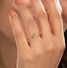 This Moissanite Engagement Ring is a stunning piece of women's jewelry, featuring a beautiful floral design with a round white Moissanite as the main stone. The ring is 18K Yellow Gold plated over Sterling Silver, with a band style and prong setting. It is adjustable and can be engraved, making it a perfect gift for various occasions such as engagement, weddings, anniversaries, and birthdays. The ring is stylish, elegant, and perfect for adding a touch of beauty to any outfit. Made in India, it comes with a seller warranty and wholesale availability.