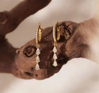 These are beautiful hoop earrings made of sterling silver with a gold overlay. They are adorned with lab-created white moissanite stones that have a pear shape and are set in a prong setting. The earrings are perfect for any occasion, including weddings, anniversaries, and birthdays. They are also stackable and have a vintage look to them. The earrings are handmade and come with a seller warranty. Shipping POLICY 100% free shipping we offer worldwide shipping item will be shipped within 2 day after payment is cleared. the delivery time usually takes 15-22 days& depending which country & location. Payment POLICY we accept payments through pay pal only. payment should be made within 3 days after purchase Feedback POLICY please do not leave negative or neutral feedback before contacting us. we assure you that we will resolve any kind of issue or concern you may leave RETURN POLICY Your satisfaction our priority. returns are available within 30 days of the item's arrival. 100%money back or exchange guarantee Thanks For Visit our shop