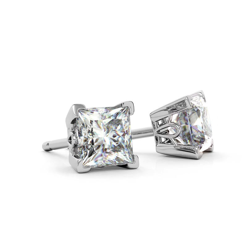 Elevate your jewelry collection with these stunning Moissanite Sterling Silver Stud Earrings, featuring a square shape that exudes timeless elegance. The 925 silver setting provides a perfect backdrop for the eye-catching white/colorless Princess cut Moissanite stones, offering an exceptional sparkle that's sure to turn heads. Crafted in India, these earrings reflect a commitment to quality with each piece boasting a prong setting that ensures the stones are securely held. The gemstone clarity grade is eye clean, ensuring a pristine appearance. With their versatile style, they're an ideal choice for any occasion, making them a must-have for those who appreciate fine craftsmanship and understated beauty. Details:- Material: 925 Sterling Silver Gemstone: Moissanite Stone Size: 5MM/6mm/7mm/8mm/9mm Shape: Square (Princess cut)