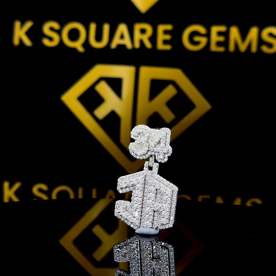 Custom Letter Hip Hop Pendant, Custom Your Lucky Name Or Letter, Men's Hip Hop Number Pendant, Moissanite Pendant, Ice Out Hip Hop Jewelry, 925 Sterling Silver Moissanite is diamonds best alternative. Please allow us 1 Week processing time as it is Customized only for you. Pendant Details: → Stone: Round Cut Moissanite VVS1 → Color: D White → Clarity: VVS → Luster: Excellent → Make: High Quality → Carat Weight: 2.00 Ct Approx. → Pendant Length: 30.00 MM → Pendant wide: 20 mm Metal Details: → Metal type: 925 Sterling Silver → Metal Purity : 925 → Metal Tone: Silver → Metal Stamp: Yes Pendant Features: Customization: Available for metal and stone changes at an additional cost. Engraving: Complimentary. Occasion: Perfect for special occasions such as engagements, weddings, or anniversaries. Customize Your Pendant: Can't find your dream pendant? No worries! We happily accept customized orders in 925 Sterling Silver as well as 10KT, 14KT, and 18KT Gold. E xplore various designs, from simple solitaire pendants to intricate, one-of-a-kind creations. Shipping Policy: We take great care packaging every item to ensure safe shipment to you. Shipping is always free to our customers and will be shipped out within handling time. For International orders, any cost like Custom Import fees, Octroi and Shipping charges would be buyer's responsibility, can contact anytime for more clarification. Payment Policy: Immediate payment is required upon selecting "Buy It Now" or upon checking out through the cart. We only accept payment via payment method provided by eBay. eBay & PayPal allows you to pay using a major credit card or direct transfer from your bank accounts. Feedback: Your feedback is invaluable. Please rate us with 5 stars upon receiving your item. If any issues arise, reach out to us first for the best solution. About Us: We offer quality items at competitive prices, meticulously packaged for safe delivery. Contact Us: Have questions? Reach out via eBay messaging. Our team is available Monday to Friday, 8 AM - 5 PM, with responses within 24 hours. Experience elegance with us. Shop now for timeless treasures that celebrate your love story. Thank you for considering ksquaregemsIN. Craft your forever ring with us and cherish your love for a lifetime. Let's create something beautiful together! See you soon!