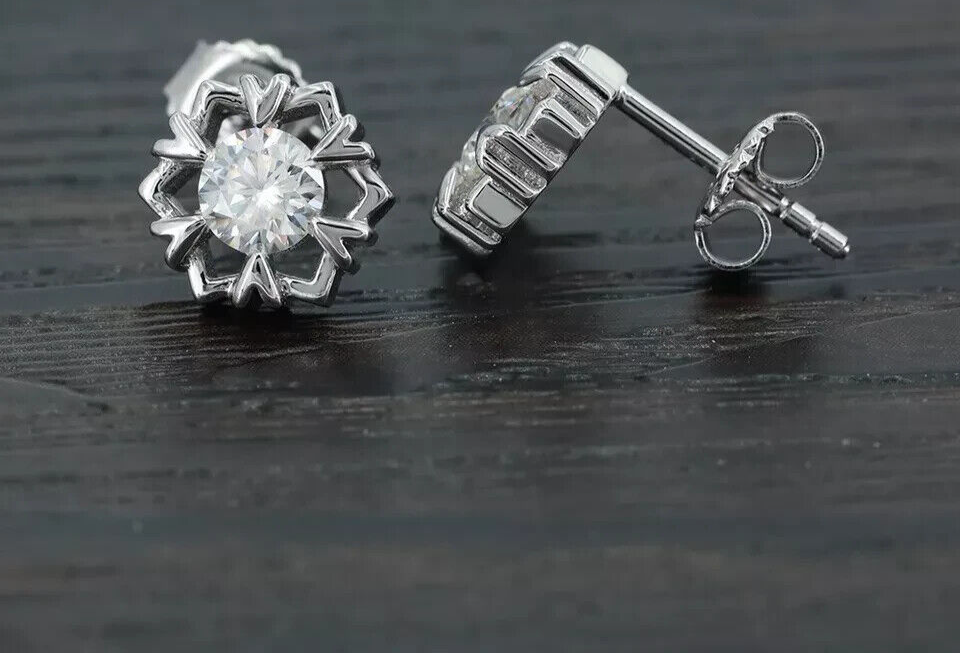 $ 256.871.50 Ct Real Moissanite Cluster Drop & Dangle Earrings 14K White Gold Plated