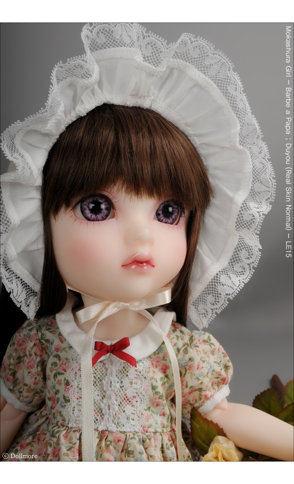 This is very beautiful bonnet with lace. It is a good item to coordinate with one-piece dress in spring and summer. This will add point to your doll's dress. * Included: 1 bonnet * Model: Mokashura Doll - Duyou (Real Skin Normal; 40.5cm)
