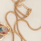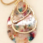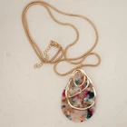The Moloch resin teardrop necklace features a gold tone chain with a teardrop pendant. This multicolor necklace is 30 inches long and has a bohemian style, perfect for expressing beauty and love. Made of resin, it adds a unique touch to any outfit.