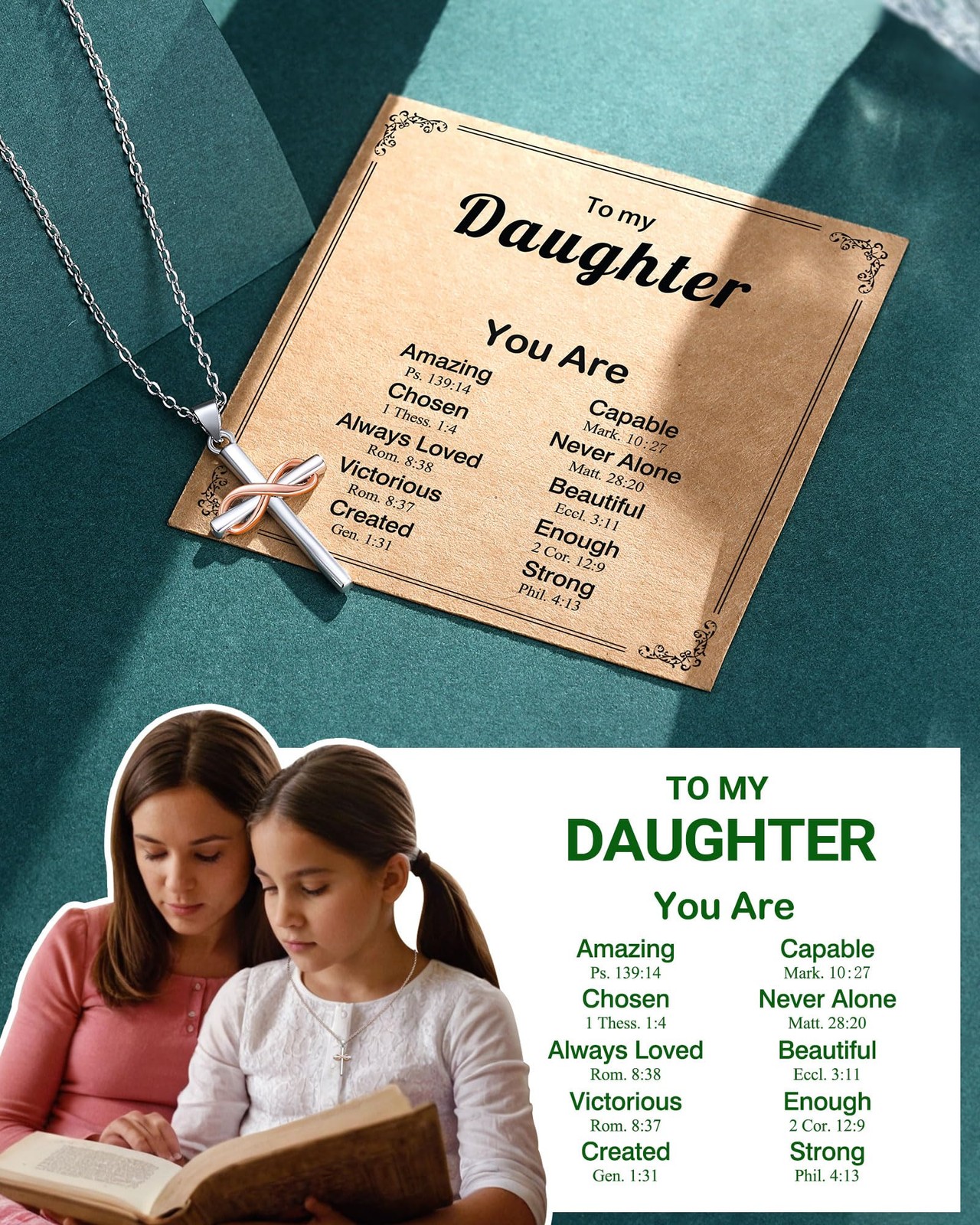 Gifts for Daughter Teens Girls Gifts Cross Necklace from Mom Birthday Baptism Confiramtion Easter Christian Gifts for Kids Tween Teenage Girl 8 10 12 14 16 18 13 Necklaces for Teen Girls: This cross necklace comes with an uplifting message of encouragement, featuring powerful affirmations like "Amazing," "Always Loved," and "Victorious" that are perfect for showing support and love to your daughter. Daughter Gifts from Mom: Thoughtfully designed for daughters, the necklace and card combination offers a personal touch, making it a sweet gift for birthday, Christmas, Graduation, Back to School, or any special occasion. Timeless Design: The elegant cross pendant with a rose gold infinity symbol is not only beautiful but also symbolic of everlasting love. Crafted with high-quality materials, this necklace is a piece that can be cherished for years. Thoughtful Packaging: Featuring the meaningful message card, makes it an easy, ready-to-gift item. It’s a great option for anyone looking to send a heartfelt, symbolic present. After-Sales Service: Your happiness is our number one priority. If you're not loving your product, let us know so we can make it right! To get in touch - a member of our team will be happy to help.