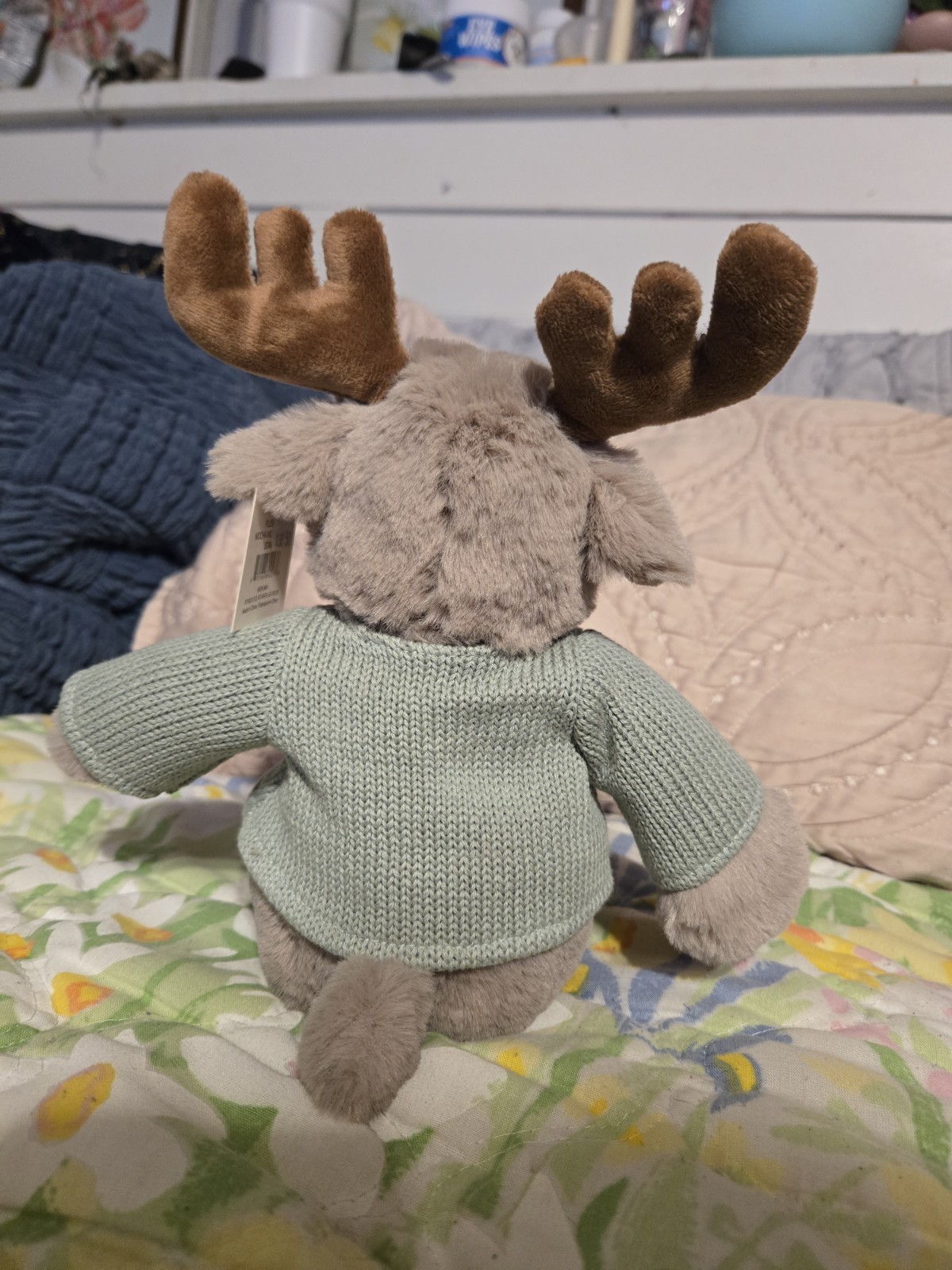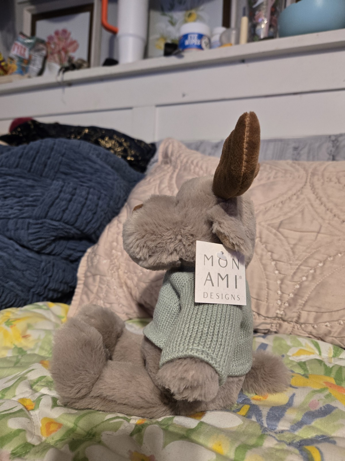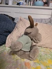 The Mon Ami Designs Mocha Moose Stuffed Animal is a rare and unique toy perfect for children and collectors alike. This medium-sized plush animal features a mocha color. this stuffed moose is not only safe for kids but also easy to care for, he is hand washable