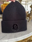 MONCLER Black Knit Beanie Hat * Big Velvet Logo * NEW * Retail $375 * NEW w/ out Tags * Big Black Velvet Logo * 100% Soft wool ( Feels like Cashmere ) * VERY RARE Sold out * One Size Fits all * 100% Authentic