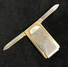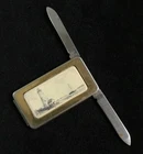 Vintage two-tone gold and silver with a ceramic inset on the Barlow lighthouse and ship This money clip has several purposes: Money clip/ card holder Knife blade Nail File Size: 2 1/4" x 1" x 1/4" Thanks for considering my item. I never use stock photos. The item you see in the picture(s) is the actual item you will be bidding on. Always sold as is, but I ensure customer satisfaction. You come first. I allow my feedback to speak for me. Payment: PayPal, within 3 days of purchase. Shipping: USPS Priority Mail or if possible First Class. For Books or media I will ship Media Mail. If item is heavy I can/will ship by USPS parcel. I ship within one day of receiving payment, often the same day. I can accommodate special requests at buyer’s expense & combined shipping is welcomed. I do not ship on Saturday. Return Policy: If you are not happy with your purchase please give me the opportunity to make it right. Buyer has 30 days to return the item after sale. Buyer pays return shipping.