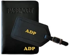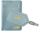 Personalized Monogrammed Leather RFID Passport Holder Cover and Luggage Tag Main product features: 100% genuine leather Foil stamp customized with your initials (up to 4 characters) Contains advanced RFB (Radio Frequency Blocking) technology. Passport Cover Dimensions: 4" x 5.75" closed Luggage Tag: strong & adjustable buckle and strap keeps securely fastened. Includes protective leather flap for privacy protection. Dimensions: 2.75" x 4.5" (not including buckle) Please include the following in the Message To Seller section at checkout: Initials you want stamped (up to 4 characters) Choice of foil letter color (see image above) Font choice (see image above) This personalized passport cover is a must for any traveler. Made from 100% genuine leather, it is soft yet sturdy and able to hold up to the rigors of traveling. Keep your passport in good shape for years to come with this custom passport case. Completely personalized with a gold or silver foil stamp with your initials or monogram (up to four characters). Just tell us how you want it customized. Excellent gift idea for anniversaries, destination weddings, bridesmaids, groomsmen, or any occasion! The monogrammed passport holder has a Radio Frequency Blocking (RFB) technology to prevent personal information from being stolen by thieves using scanners. One less thing to worry about when you are traveling. Includes slip pocket on the outside back cover. The passport holder measures 4” x 5.75” when closed. Make your suitcase easy to identify with a personalized luggage tag. Strong and adjustable buckle will stay securely fastened to your suitcase. Front flap hides your identification information as a privacy measure. Choose from the following colors: Antique Saddle Black Bright Pink Chambray Navy Teal White
