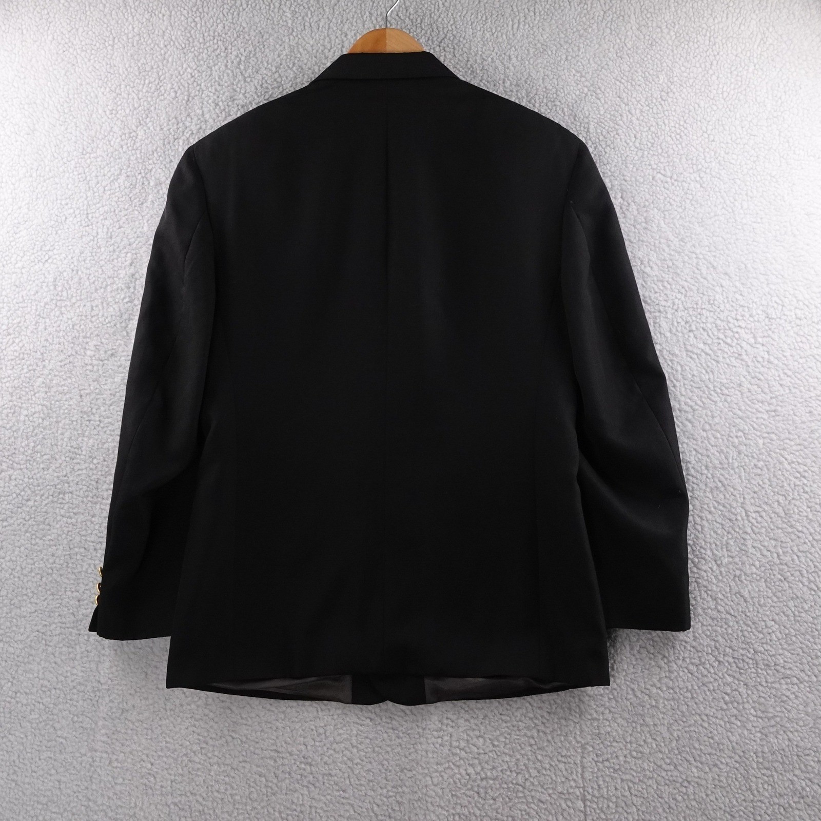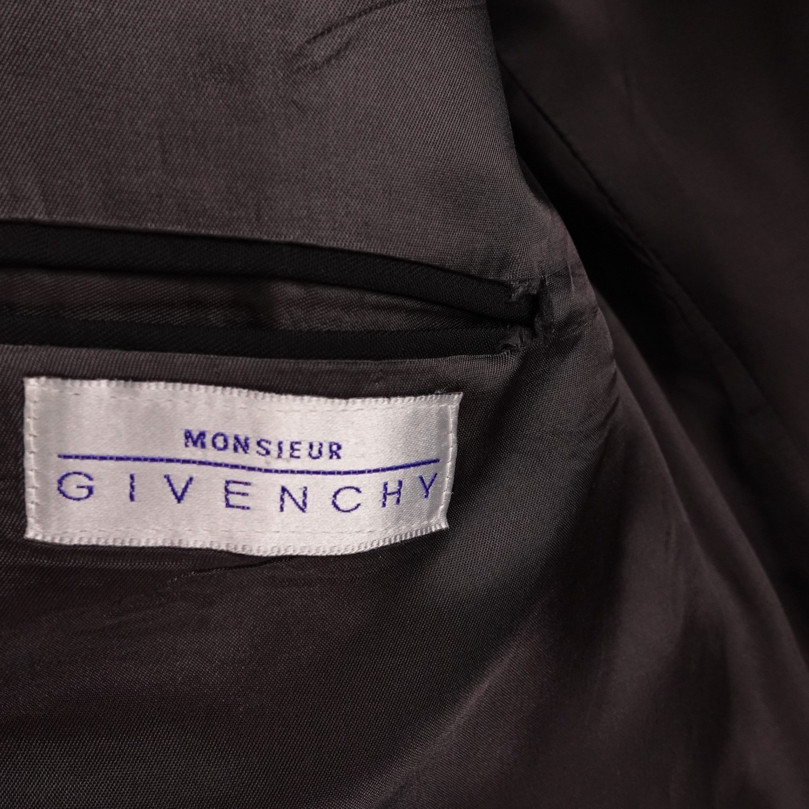 Command attention with this distinguished Monsieur Givenchy black blazer. Impeccably tailored, this jacket features elegant gold buttons that add a touch of refined sophistication. The classic silhouette and luxurious feel make it a versatile piece for any professional or formal occasion. Perfect for important business meetings, elegant dinners, or making a polished statement at special events. Type: Blazer Department: Men Pattern: Solid Fit: Regular Lining Material: Polyester Jacket Cut: Single-Breasted Jacket Front Button Style: Two-Button Occasion: Business, Casual Jacket Lapel Style: Notch Jacket Vent Style: Single-Vented Season: Fall, Spring, Winter Front Type: Flat Front Chest Size: 110 cm Keywords: designer, luxury, tailored, business, formalwear, eveningwear, smart casual, classic, sophisticated, elegant, workwear, dressy