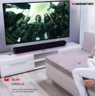 Enhance your home audio experience with the Monster Soundbar. This rectangular-shaped soundbar is designed with Bluetooth connectivity and features a remote control for easy operation. The soundbar has LED lights that add a touch of elegance to your room and enhance the overall look. With 30W RMS power, the soundbar provides a powerful and immersive audio experience. It has audio inputs for AUX and is compatible with various devices. The Monster Soundbar is perfect for movie nights, parties, and gaming sessions. It comes in black color and is a great addition to any home audio setup.