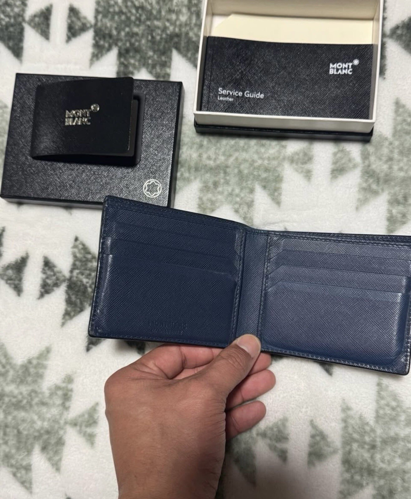 This Montblanc card wallet in black leather features credit card slots, an organizer, and a photo holder. With a solid pattern and the brand's logo accents, this designer wallet is a stylish and practical accessory for men.