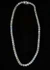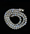 This Moon Glow Moonstone Round 4 MM Tennis Necklace is a stunning piece of fine jewelry made of 925 Sterling Silver with a length of 16 inches. The necklace features a round pendant shaped Moonstone as the main stone, with a beautiful blue color and excellent cut grade. With a total carat weight of 12, this necklace is perfect for anniversary occasions and is customizable to suit your preferences. Made in India, this nickel-free necklace is designed with a curb link chain and prong setting style, making it a stylish and elegant addition to any jewelry collection.