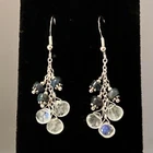 Add a touch of elegance to your outfit with these stunning artisan cluster earrings. The earrings feature a beautiful cluster of moonstone teardrop gemstones, and are accented with shimmering blue kyanite gemstones . The earrings are made of .925 silver and have a French wire closure for easy wear. These earrings are perfect for any occasion, whether it's a casual day out or a special occasion like an anniversary or birthday. They are handcrafted with natural gemstones making them a one of a kind piece. The earrings are designed in a cluster/waterfall design and wire-wrapped for a secure and comfortable fit. Get these beautiful earrings today and add a touch of sophistication to your jewelry collection.