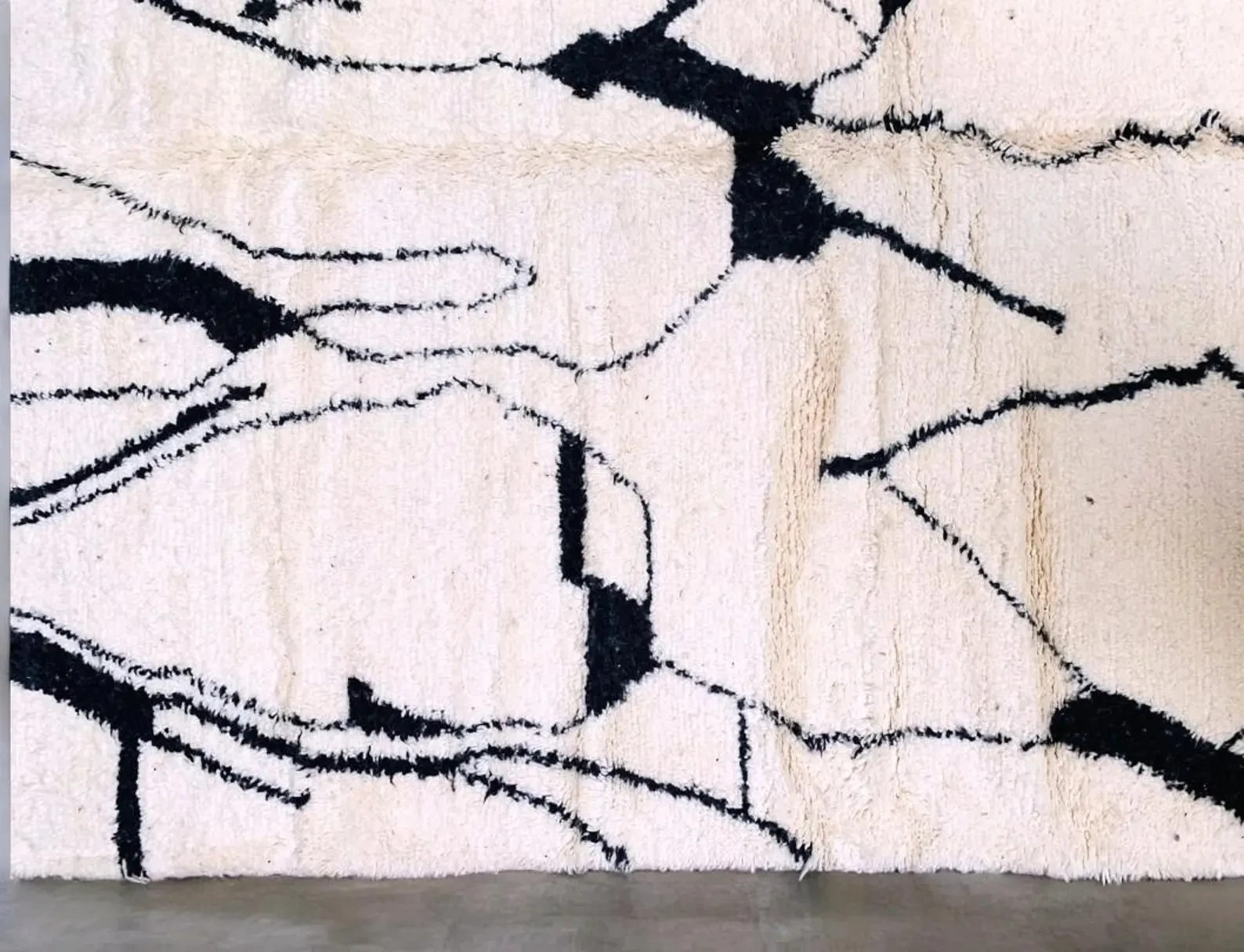 New Black White Geometric Wool Moroccan rug ft for Living Room,Bedroom,Drawing