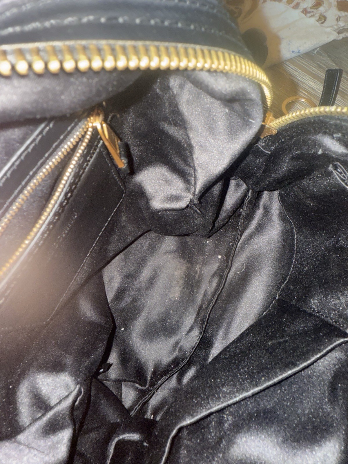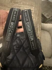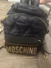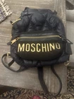 Moschino Logo Mini Backpack Quilted Black × Gold Adjustable Leather Strap USED