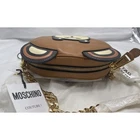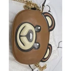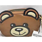 Moschino Teddy Bear Face Leather Shoulder Bag New. See pictures, please. Ships quickly PRODUCT DETAILS Shoulder strap, 20" drop Dimensions: 7.5"W x 2"D x 5.5"H Zip closure Teddy bear face appliqué details at front Gold-tone hardware Removable key chain at strap Logo appliqué at back Mannequin model measurements: 5'10" height, wearing a size 4 or small Fabric lining Leather Made in Italy