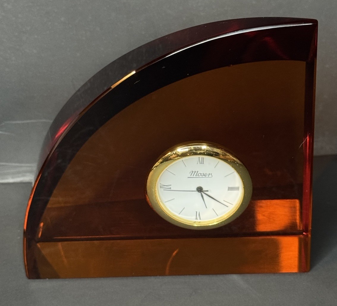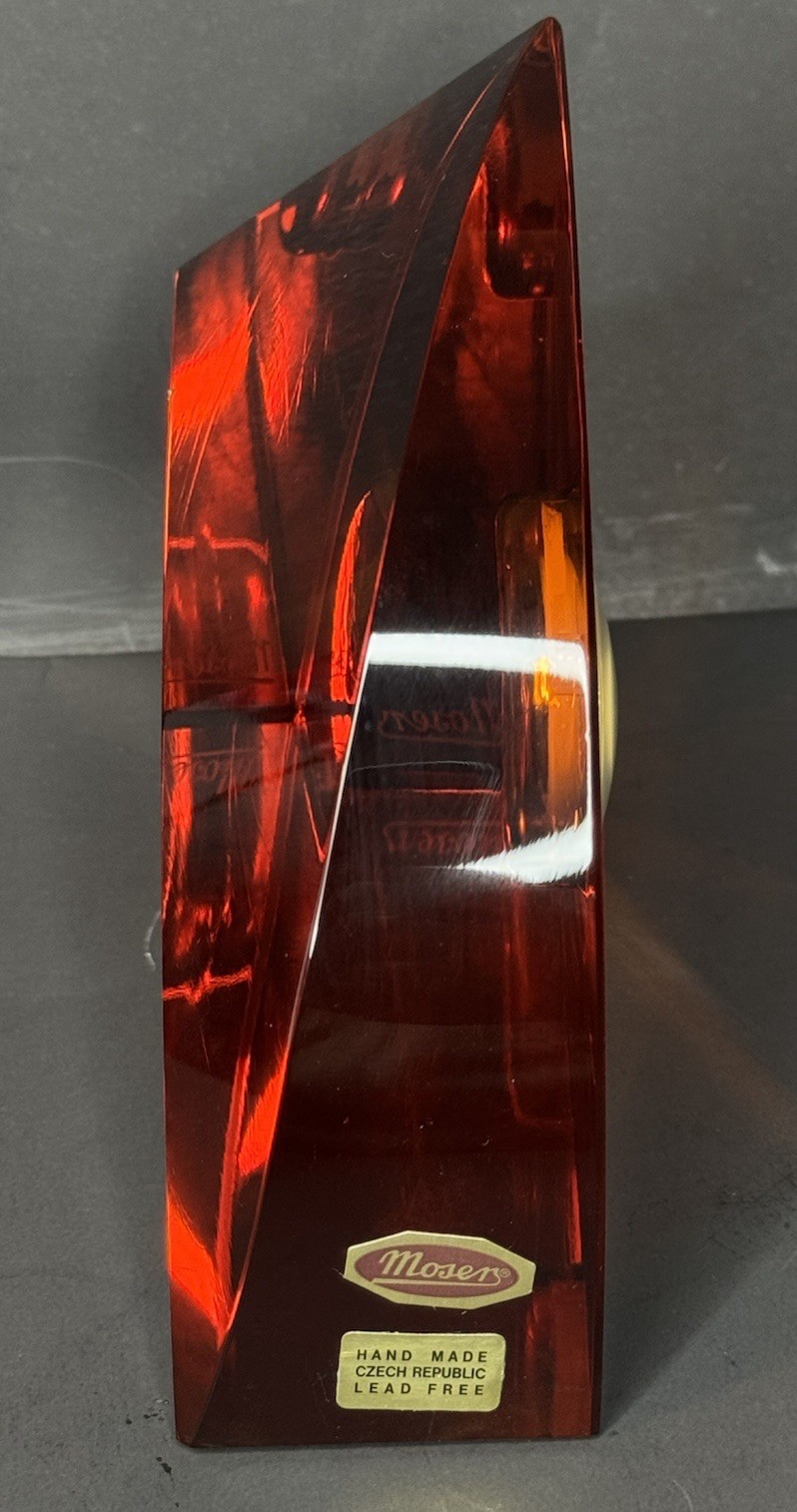 $ 26.4Moser Red Crystal Clock Czech Signed