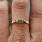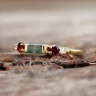 This beautiful Moss Agate Garnet Ring is a perfect choice for any special occasion, whether it be an engagement, wedding, anniversary, birthday, or Valentine's Day. Crafted from 925 Sterling Silver and coated with a thin layer of gold (gold vermeil), this ring is made to last. The main stone is a natural Baguette-shaped Agate, measuring 3mm in length and 6mm in width, with a depth of 2mm. The stone is eye clean and has an excellent cut grade, ensuring its beauty and brilliance. In addition to the main Agate stone, this ring also features two secondary stones: a Garnet and a Moissanite. Both of these stones are synthetic and have a round shape. The ring is handmade and features a prong setting style. It is stackable and can be personalized, making it a unique and special piece of jewelry. Moss Agate Garnet Ring, 925 Sterling Silver Gold Vermeil Engagement Ring Gift Gemstone:- Moss Agate/Garnet/Moissanite Stone Size:- 3x6mm/3mm Stone Shape:- Baguette/Round Stone Category:-Faceted Metal:- 925 Sterling Silver Disclaimer 1: Colour of the delivered item could slightly vary from that is displayed in the pictures due to the use of natural stones, lighting effects and editing.
