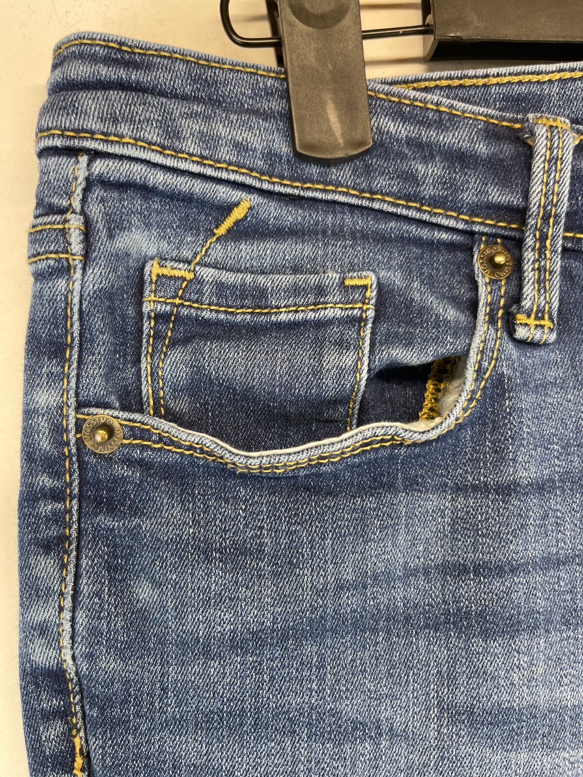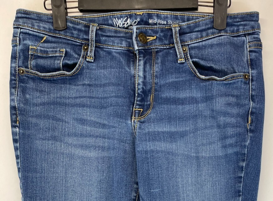 The product is a pair of Mosimo Women's Size 6 Mid Rise Skinny Jeans in a power stretch denim fabric. These jeans feature a zip and button closure, a 5-pocket design, and a 29-inch inseam. The style is slimming, easy to care for, and includes accents like distressed detailing. With a solid blue color and a blend of polyester, Lycra, and cotton, these jeans are machine washable and designed for a regular fit. The design of the jeans incorporates various themes such as rock, hippie, grunge, and hipster, making them versatile for different seasons and occasions. Very good preowned condition with normal preowned wear. Please see all photos; specifically for measurements. ******************************************************************************************************************************************************* FOR CLOTHING SPECIFICALLY, BE SURE TO REVIEW PHOTOS FOR ACTUAL MEASUREMENTS OF THE WAIST, RISE, INSEAM, LEG OPENING, SHIRT WIDTH AND LENGTH, ETC... WASHED CLOTHING TENDS TO SHRINK SLIGHTLY AND THEREFORE MAY DIFFER SLIGHTLY FROM WHAT THE TAG/SIZE SAYS THAT IT IS. ******************************************************************************************************************************************************* The size in the title is the size on the tag of the garment. See photos for measurements of actual measurements as they may differ. ALWAYS CHECK THE MEASUREMENTS IN THE PHOTOS. This will remove any questions on measurements as well as always cover the possibility of human error in the listing(s) in the case of a typo or oversight. All clothing and shoes have been washed/cleaned, and are cleaned and stored in a smoke free environment. However, please keep in mind that these are preowned items and there is always a possibility of there being preowned dirt, dust, or stray hairs present. I do my best to clean these items with hair collecting products in the dryer after being washed, and by hand with shoes. If shoe trees appear in the photos, they are for photography purposes only to illustrate how the shoes look filled out, and are not included. I accept or negotiate reasonable offers. If you like what you see here, please visit my eBay store for many, many ore items similar to this one. I hope to see you there. Have an amazing day. Thank you. FOR CLOTHING SPECIFICALLY, BE SURE TO REVIEW PHOTOS FOR ACTUAL MEASUREMENTS OF THE WAIST, RISE, INSEAM, LEG OPENING, SHIRT WIDTH AND LENGTH, ETC... WASHED CLOTHING TENDS TO SHRINK SLIGHTLY AND THEREFORE MAY DIFFER SLIGHTLY FROM WHAT THE TAG/SIZE SAYS THAT IT IS. *******************************************************************************************************************************************************