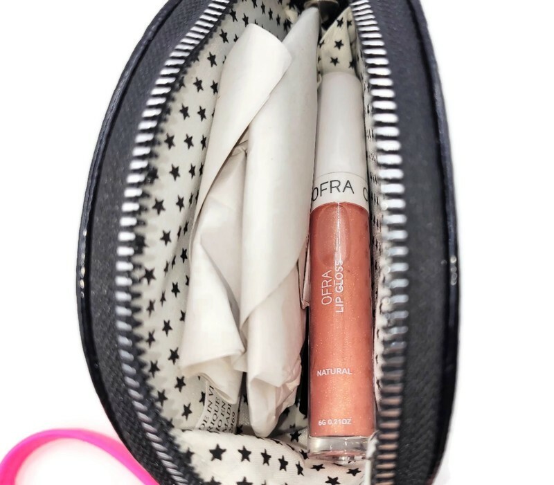 Wallet/handbag, makeup & bracelet "mother" giftset. Set includes: Small black & pink pocketbook with pink heart charm, filled with OFRA lip gloss in natural & EYEKO LONDON mini rock out & lash out mascara, & a BRILLIANCE "mother" silver plated adjustable charm bracelet. All brand new. Makes a great gift! #giftset #makeup #bag #mom