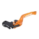 For KTM duke125 2024 For KTM duke390 2024 These brake and clutch levers go perfectly with the imposing look of the KTM DUKE 125/390. The two grip surfaces equipped with lines known as contrast cuts are proof of the lever’ design, which is high-quality and refined in every way. Alongside the design’s refinements, special value is also placed on ergonomics: the comfortably wide grip surfaces can be adjusted in six full steps, a generous range that lets absolutely everyone find the right individual setting for them. You can also carry out the adjustment with one hand while riding. The brake and clutch levers in this set made of high-strength, milled aluminium and anodised in black thus combine perfect craftsmanship and perfect ergonomics with the finest grip feel. Facts Functions: High-quality brake and clutch levers perfectly tailored to the KTM DUKE 125 / 390 Crafted to a high quality and refined finish in every way Individually adjustable in 6 steps – even while riding Wide, comfortable grip surfaces The levers combine perfect craftsmanship and ergonomics with the finest grip feel in the best way possible Set consisting of one brake lever and clutch lever Technical Information Material: Aluminium, high-strength, precision crafted on CNC tool machines, high-quality, fine finish with contrast cut, black anodised