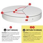 Multi-Rotation Modes: [Continuous Rotation Mode] : The turntable rotates continuously at a set angle and speed until manually stopped or another mode is activated. [Single-Step Mode] : The turntable rotates at a set angle and speed, then stops. [Repeated Step Mode] : The turntable rotates by a set angle, pauses, and then repeats the action, continuously cycling until manually stopped or another mode is activated. [Multi-step Within One Circle Mode] : The turntable rotates by a set angle, pauses, then repeats the action until it completes a full rotation (360 degrees) and returns to the starting position. about [Set Angle] : Purpose: 1. Single-Step Mode: Rotates the specified angle and then stops. 2. Repeated Step Mode: Rotates the specified angle, pauses, and repeats the cycle until interrupted by another operation. about [Set Origin] :Purpose: Allows the turntable to remember the current position. When the "Return to Origin" button is pressed, the turntable will return to this position. about [Return to Origin] : Purpose: When the "Return to Origin" button is pressed, the turntable moves back to the previously set origin position. about [Speed Up] : Purpose: Adjusts the turntable's rotation speed, taking effect immediately. about [Speed Down] :Purpose: Adjusts the turntable's rotation speed by one level, taking effect immediately. about [Clockwise Direction] : Purpose: Adjusts the turntable's rotation direction to clockwise, taking effect immediately. about [Counterclockwise Direction] :Purpose: Adjusts the turntable's rotation direction to counterclockwise, taking effect immediately. about [Start/Stop] :Purpose: Starts the turntable if it was stopped, or stops it if it was rotating. The state toggles between rotating and stopped each time this button is pressed. !!!NOTE:【Max Load】: Max Loading range is 132~400lbs(60~180kg) - Continuous Rotation Mode: "180kg" max load(No angular positioning required). - Stepped Rotation Mode: "60kg" max load(With positioning accuracy). 【Diameter/Speed/Direction】 Diameter: "40cm/15.8 inches". Rotation Speed Range: "Adjustable speed range of 28 to 75 seconds per revolution". Direction: "Supports clockwise and counterclockwise rotation". 【Professional Remote Control】Precise angle settings and user-friendly combination key design enable support for a wider range of applications. Support: Set the current position as the origin point (used in conjunction with the "Return to Origin" button). Support: Save the current settings to the turntable's internal flash. More versatile angle buttons and mode button combinations provide greater flexibility for various applications. 【Supports four rotation modes】: 【Continuous Rotation Mode】for Live Video Show.【Single-Step Mode】for Product Display and Live Demonstration.【Repeated Step Mode】 for Automated Product Display .【Multi-step Within One Circle Mode】for 360-Degree Multi-Angle Photography and 3D Scanning. The intelligent multi-step within one circle mode makes shooting more streamlined and automated. 【Excellent Structural Design】 The product is equipped with a flat thrust bearing inside, enabling it to support heavier loads. It features a high-precision reduction stepper motor (a type of brushless motor), offering high torque, long lifespan, stable rotation, quiet operation, and reliable performance. 【Application Scenarios】Widely used for 3D scanning, body scanning and modeling, product display, video shooting, product photography, 360-degree photography, and large-scale product displays both in-store and online, such as clothing mannequins, Christmas trees, digital products, and household items. 【Power Adapter】The adapter input is AC 100~240V, and the output is DC 15.5V/1.2A. US Standard Plug. UL-certified power adapter.