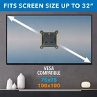 Mount-It! Small TV Monitor Wall Mount | RV TV Mount | Quick Release | Fits 13 15 17 19 20 21.5 24 25 27 32 Inch Screens | 75 100 VESA Compatible | Low-Profile Slim Design | 30lb Capacity Description and features Fits one computer screen or television 13 15 17 19 20 21.5 24 25 27 32 inches in size, with a maximum support weight of 30 pounds, using the 75x75mm or 100x100mm VESA square bolt hole pattern found on the back of the tv/monitor. Mounts to a single stud on the wall. Quick release function allows for easy installation and takes just a few seconds to remove the mounting bracket from the wall plate. Wall mount is low profile (1.75 inches away from the wall) and has a slim design. Display can be tilted up 5 degrees and 15 degrees down. Comes with all mounting hardware, tools, and instructions necessary for assembly. Simple installation in minutes. Our friendly and responsive customer support team is available to answer any questions you may have during normal business hours and mount comes with a 5-YEAR . How do I know this mount fits my TV or Monitor? 1. Measure VESA holes on the back of your TV or Monitor. They must match 75x75mm (3"x3") or 100x100mm (4"x4") 2. Ensure that your TV or Monitor is not heavier than 30lbs! (most LCD TVs under 32" are lightweight) Once, you've checked those two figures, you can be 99% sure our mount will support your screen! When buying a mount, it can seem pretty complicated. But it really comes down to those two things: VESA holes (to screw your mount into your TV) and weight (to ensure your TV is safe on the wall). Specifications: This high quality tilting wall mount is perfect for computer monitors or small televisions. Featuring a low profile design that sits 1.65" from the wall and the ability to tilt up to 15 degrees, this mount is as functional as it is visually appealing. Made from high-grade steel. Very sturdy and easy to install. Ideal for new and slim LCD and LED TVs. Wall plate dimensions are 3.9" by 3.9". The mount comes with installation instructions and necessary hardware for installation. Buy with confidence. Features / Specifications - Low-profile design - Tilt downwards 15 degrees - VESA 75 and VESA 100 bolting pattern compatible - Easily installs to one wall stud or concrete, brick wall - 30 lb load capacity - Material: Steel Return Policy ⦿ All our products come with a 30-Day Return Policy. If you would like to return your item and you are within 30 days of the purchase, and it is still in its original condition, you can return the item by contacting us through eBay messaging. ⦿ If you are not 100% satisfied, please let us know the Detailed Problem,We will give you a 100% satisfactory solution ⦿ If you received an incorrect, damaged, defective, or item not as described, contact us for a partial/full refund or replacement on our cost. ⦿ Free Shipping and Free Return 30-Days Money Back Guarantee. ☎ For all returned products, buyers MUST contact us for the returning address. Shipping ⦿ We do not ship to a different address. we will ship to the address you provide on the ebay only. Please check your address before purchase. ⦿ It should take 2-4 business days for the product to reach your destination. ⦿ If the product doesn't reach your destination within the time limit, please give it an additional 1-2 business days in case of postal delays and/or possible technical issues. ⦿ We use a selection of shipping services such as UPS, FedEx, USPS etc. ⦿ We ship only to the 48 contiguous states of America. We do not ship to Hawaii, Alaska, US Protectorates, APO/FPO addresses. Local pickups are not offered. ☎ If it takes any longer than that, please do not hesitate to contact us to resolve the issues. Contact us ☎ Please contact us via eBay message. And your message will be replied within 1 business days. For any queries, please feel free to contact us, we will get back to you as quickly as possible. Customer 100% satisfaction is our first priority and goal. We are always working hard for maintain high standards of excellence and resolve your problem in best way. So your POSITIVE FEEDBACK is very important. If you have any problem of the item, please feel free to let us know before leaving your feedback. We will try our best to solve your problem. About us We are here to give you quality products, competitive pricing and amazing service in order to make sure you get the best deal online, Thank you for your business and the opportunity to serve you.