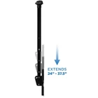 Burdened by a static tv mount or simply looking to upgrade the appearance of your home or business? This slim ceiling mount will make a minimal hardware impact on the look of your home or office and it will increase screen functionality by a huge factor. The full motion capabilities of this mount give your screen a large range of mobility for an adaptable and comfortable environment. Rotate the screen 360 degrees to face any direction in the room. The multi-directional design is also paired with a tilting motion for a 15 degree range. Tilt or pivot your screen for a wide array of potential ergonomic settings. Ergonomics can reduce neck, back, and even eye strain for a healthier and more comfortable viewing experience. The tilt function doubles as a screen optimizer. Screens were designed to be viewed head-on. With this product, at any height you can ensure your display will be projecting its image directly to you for optimal image quality. The fully capable design is coupled with a high quality reinforced steel. The alloy can maintain and support up to 220 lbs and screens as large as seventy-five inches. The VESA bracket is nearly universal covering 75x75, 100x0100, 200x200, 100x200, 200x400... All the way up to 800x400 configurations. Simply slide the VESA arms along the plate to adjust. The universal compatibility ensures that this enduring design will last throughout multiple screen upgrades or replacements so you will not ever have to buy another mount. All necessary hardware and instructions are included. Features and Specifications: Screen Sizes 32 to 75 (inches) VESA 75x75 to 800x400 (mm) Max Load Capacity 220 lbs Rotate 360 degrees Tilt 20 degree down Height adjustability 22.4 to 32.4 inches Locking bar Cable Management Ready Color Black LARGE TV CEILING MOUNT: Heavy duty ceiling bracket made for large and heavy televisions. Save space and increase functionality of your television. Use in homes, theaters, businesses, schools, hospitals, lobbies, hotels, manufacturing plants, production lines. UNIVERSAL VESA BRACKET: Fits most TV brands with screen size of 40, 42, 45, 48, 50, 55, 60, 65, 70, 75, 80, 85 and some 90. Compatible with standard VESA patterns of 300x300, 400x200, 400x300, 400X400, 600x200, 600x300, 600x400, 700x400, 750x400, 800x400. FULL MOTION DESIGN: Height adjustable (24 to 32.5 inches), tilt down up to 20 degrees, 360 degree full rotation/swivel. HEAVY DUTY: Commercial grade with high-strength steel. Tested to 3 times the rated capacity of 220 Lbs. EASY INSTALLATION: Simple connection to all types of ceilings. Cable management holes in the bracket plate ensure you have easy access to cords and ports.