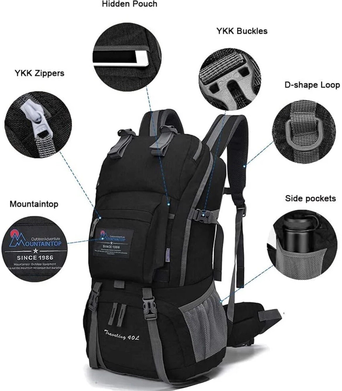 Get ready for your next outdoor adventure with this high-quality MountainTop Hiking Backpack. Designed with a 40L capacity, this backpack is perfect for carrying all your essential gear. Whether you're a seasoned hiker or just getting started, this backpack is sure to meet all your needs. Featuring a durable design and comfortable straps, this backpack is perfect for any outdoor activity. With its spacious compartments and multiple pockets, you can easily organize all your gear and keep it within reach. So, whether you're hiking in the mountains or exploring the great outdoors, this MountainTop Hiking Backpack is the perfect choice.