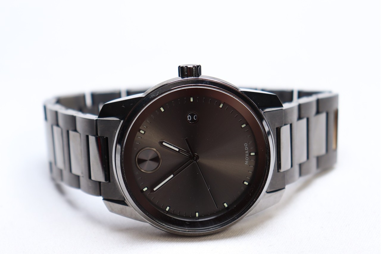 You are bidding on a Movado Bold Verso Gunmetal Grey Stainless Steel Men's Watch 3600736 $795. The item was a display and is in very good condition but the battery has died and it will need to be replaced. The band is about 7.25" long. It retails for $795. Features: Case Diameter 42mm Band Width 21mm Quartz Movement Water Resistant to 50M