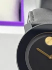 Movado Women’s Bold Black Dial Leather Strap Ladies Watch - 3600527 ($495 MSRP) With Original Box and Tags! This watch is a Shelf Pull from one of the Major Department Stores. Watch has micro scratches on the watch case/band, visible under direct light. NOTE : There's a small mark (dot like) on the dial. Discover refined minimalism with the **Movado Women’s Bold Black Dial Leather Strap Watch (Model 3600527)**. Designed with Movado’s signature clean aesthetic, this timepiece features a bold black stainless steel case paired with a smooth black leather strap, creating a seamless, modern silhouette. The iconic single dot at the 12 o’clock position, rendered in yellow gold-tone, stands out against the deep black dial, symbolizing the sun at high noon—a hallmark of Movado’s timeless design. The 36mm round case is crafted for comfort and sophistication, with a sleek 9mm profile that sits elegantly on the wrist. A scratch-resistant K1 crystal protects the minimalist dial, while a reliable quartz movement powers the hour and minute hands with precision. The pull/push crown and solid case back complete the understated yet durable construction, making it perfect for daily wear. Functionality meets style with water resistance up to 30 meters (100 feet), allowing for light splashes without compromising performance. Secured with a classic tang clasp, this watch is a striking choice for the modern woman who values both design and practicality. Whether worn at work or on a night out, the Movado Bold brings contemporary elegance to every moment. Features Black stainless steel case with a black leather strap. Fixed black stainless steel bezel. Black dial with yellow gold-tone hands. No markers. Movado dot appears at the 12 o'clock position. Dial Type: Analog. Quartz movement. S cratch resistant K1 crystal. Pull / push crown. Solid case back. Round case shape. Case dimensions: 36 mm x 43 mm. Case thickness: 9 mm. Band width: 17 mm. Tang clasp. Water resistant at 30 meters / 100 feet. Functions: hour, minute. Fast and Free Shipping You're already purchasing the item. Why pay additional for shipping, especially slow shipping? We get your order shipped out within 1-business day and delivered to your doorstep as quickly as possible. Competitive Pricing With our dynamic pricing model, our prices are always competitive. Our prices are some of the lowest that you will find on the internet. Rest assured that you're getting a good deal when purchasing with us. 30-day Money Back Guarantee We are committed to making sure that you leave this transaction satisfied. If you're unhappy with the product for any reason, you may return it back for your money-back or a replacement within 30 days. No questions asked!