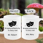 Mr Mrs Theater Teacher Gift Theatre Custom Mug Giftdrama Teacher Theater Acting Lover Actor Tumbler Actress Gift Gift For Her Or Him Product Details.. This high quality 11oz. ceramic white mug has a premium hard coat that provides crisp and vibrant color reproduction sure to last for years. Perfect for all hot & cold beverages. The highest quality printing possible is used. It will never fade no matter how many times you wash it. Material: 100% Ceramic. Print both sides. Dishwasher and Microwave Safe. High Gloss + Premium White Finish. Printed in the U.S.A. Personalized & Custom. We support personalized and custom mug to add custom, when placing an order, you can add notes to the "order note" in shipping address section. Also you can contact us directly via message. Shipping Info. Ready to ship in 1 to 2 business days, All products are made-to-order and proudly printed in the United States. Shipped by USPS and DHL, You will receive your order in 5-7 days. Replace & Refund. All products are defective during shipping broken, chipped will be replaced free of charge. You are not satisfied with the product, we will refund 100% money to you. If any other issues arise, please do not hesitate to message, we would be more than happy to assist you.