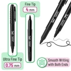 Mr. Pen dual tip permanent markers set comes with 12 high-quality black markers, each featuring two tips for versatile writing and drawing options. One end boasts a fine tip measuring 0.75mm, perfect for detailed work, precise lines, and writing that requires a sharp, defined finish. The opposite end offers an ultra-fine 4mm tip, suitable for even more precise work, such as intricate illustrations, tight typography, or any project where accuracy is paramount. These markers utilize permanent, quick-drying ink that resists smudging and fading, ensuring your marks stay sharp and clear over time, on a variety of surfaces. Whether for professional use in the workplace, detailed art projects, or everyday home use, these dual-tip markers are a versatile addition to any stationary collection. Mr. Pen dual tip permanent markers set comes with 12 high-quality black markers, each featuring two tips for versatile writing and drawing options. One end boasts a fine tip measuring 0.75mm, perfect for detailed work, precise lines, and writing that requires a sharp, defined finish. The opposite end offers an ultra-fine 4mm tip, suitable for even more precise work, such as intricate illustrations, tight typography, or any project where accuracy is paramount. These markers utilize permanent, quick-drying ink that resists smudging and fading, ensuring your marks stay sharp and clear over time, on a variety of surfaces. Whether for professional use in the workplace, detailed art projects, or everyday home use, these dual-tip markers are a versatile addition to any stationary collection.