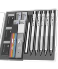 Mr. Pen mechanical pencil set is a complete sketching and drafting kit that includes five mechanical pencils with different lead sizes: 0.3, 0.5, 0.7, 0.9, and 2mm, catering to a wide range of drawing and writing needs. Accompanying the pencils are 6 tubes of lead refills, ensuring long-lasting use. The leads are graded HB and 2B, allowing for a variety of line weights and shades in your work. Each mechanical pencil is crafted with a square barrel and a knurled metal grip for superior control and precision, making them ideal for detailed work in drafting, technical drawing, or general writing. The set comes with 3 high-quality erasers for clean corrections, along with 10 eraser refills, ensuring that your work remains neat and professional-looking over time. All items are neatly organized in a sturdy, compact case, keeping your drafting tools secure and easily accessible, perfect for on-the-go artists, architects, and students. Mr. Pen mechanical pencil set is a complete sketching and drafting kit that includes five mechanical pencils with different lead sizes: 0.3, 0.5, 0.7, 0.9, and 2mm, catering to a wide range of drawing and writing needs. Accompanying the pencils are 6 tubes of lead refills, ensuring long-lasting use. The leads are graded HB and 2B, allowing for a variety of line weights and shades in your work. Each mechanical pencil is crafted with a square barrel and a knurled metal grip for superior control and precision, making them ideal for detailed work in drafting, technical drawing, or general writing. The set comes with 3 high-quality erasers for clean corrections, along with 10 eraser refills, ensuring that your work remains neat and professional-looking over time. All items are neatly organized in a sturdy, compact case, keeping your drafting tools secure and easily accessible, perfect for on-the-go artists, architects, and students.