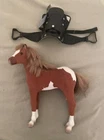 The product is a 13" tall American Girl doll horse, specifically a paint filly, with a black saddle included. The set consists of 2 pieces and is themed around equestrian activities. The horse measures 11 inches in length and 4 inches in width. It is part of the American Girl franchise and is in clean, used condition. Everything included is very clean and smoke-free. There are some normal signs of use but no heavy damage. I do not know if this is the original saddle for this horse, but it is an American girl saddle. Please check the pictures carefully in order to better assess the condition. I am willing to bundle deal with multiple purchases. I will provide fast and careful shipping. I will respond to all inquiries. Thank you for your time. E