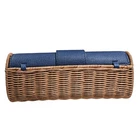 Excellent Condition Never Used, Adorable Clutch Made From Woven Rattan In A Natural Or Light Brown Color And Faux Leather In Beautiful Navy Blue With Textured Pebble Finish, Top Flap Is Secured With Gold Toned Square Pyramid Stud With A Twist Lock Mechanism I'm An Active Seller, I Ship Within 2 Business Days, I Welcome Offers!