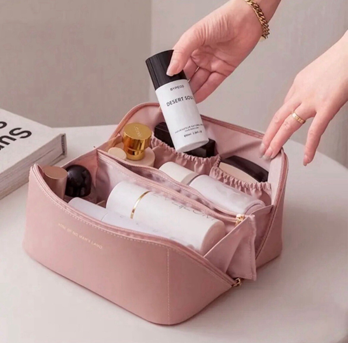 Makeup Bag Multi Compartment Organizer Women Travel Toiletry Bag Cosmetic. Portable Makeup Bag Women Cosmetic Toiletries Organizer Storage Makeup Cases Fashion Large Capacity. Color: Pink 1. This bag has a large opening design for easy access and can accommodate various cosmetics. 2. There are 3 pockets and 3 compartments inside the cosmetic bag, which can be sorted and stored so that your life is more orderly; the zipper of the makeup travel bag opening design is reasonable,it's a easy to handle and very practical zipper pouch. 3. Its stylish look and practical features make it an ideal gift for women to look flawless. You can express your love at any time, not just on certain days.
