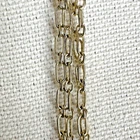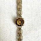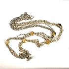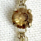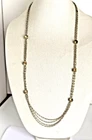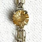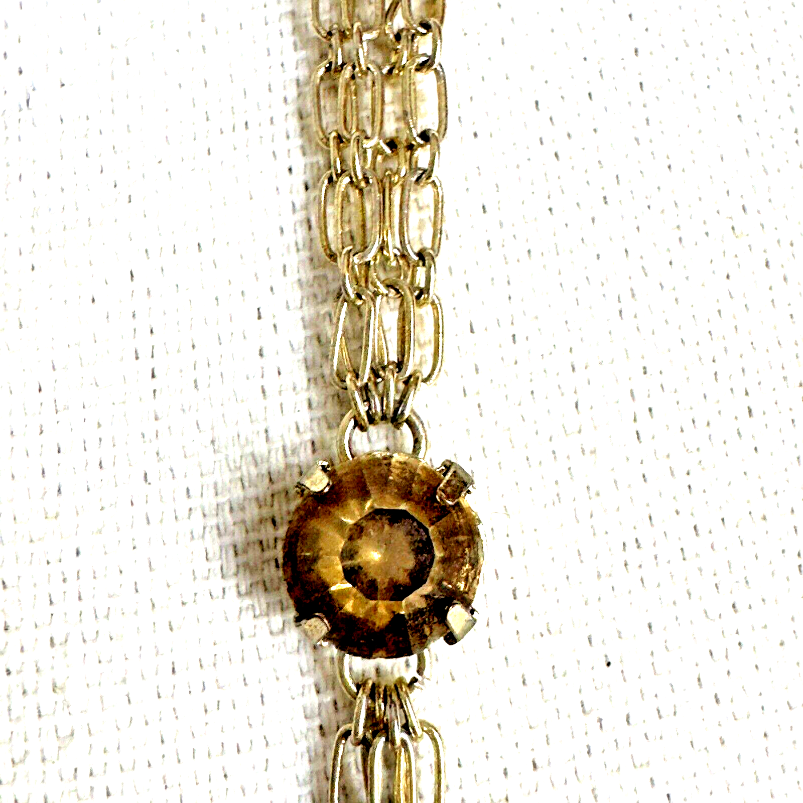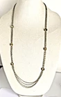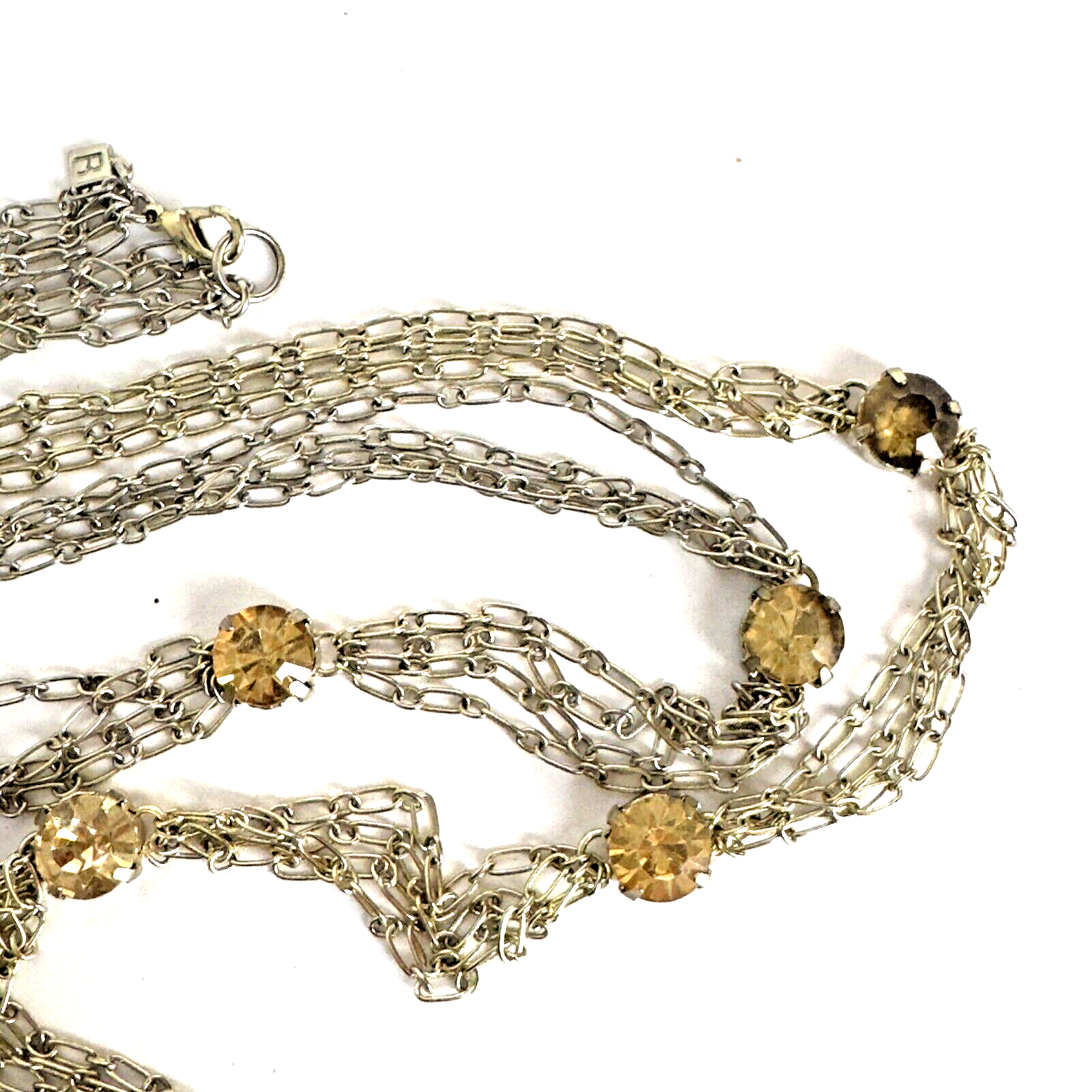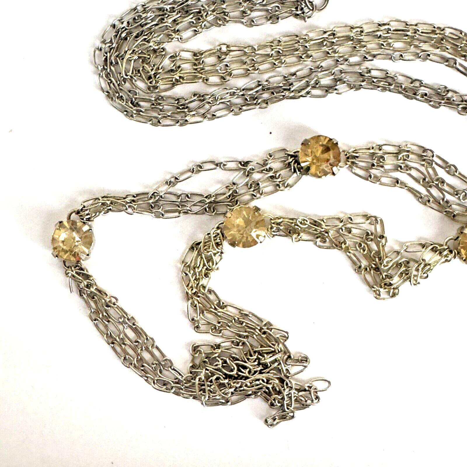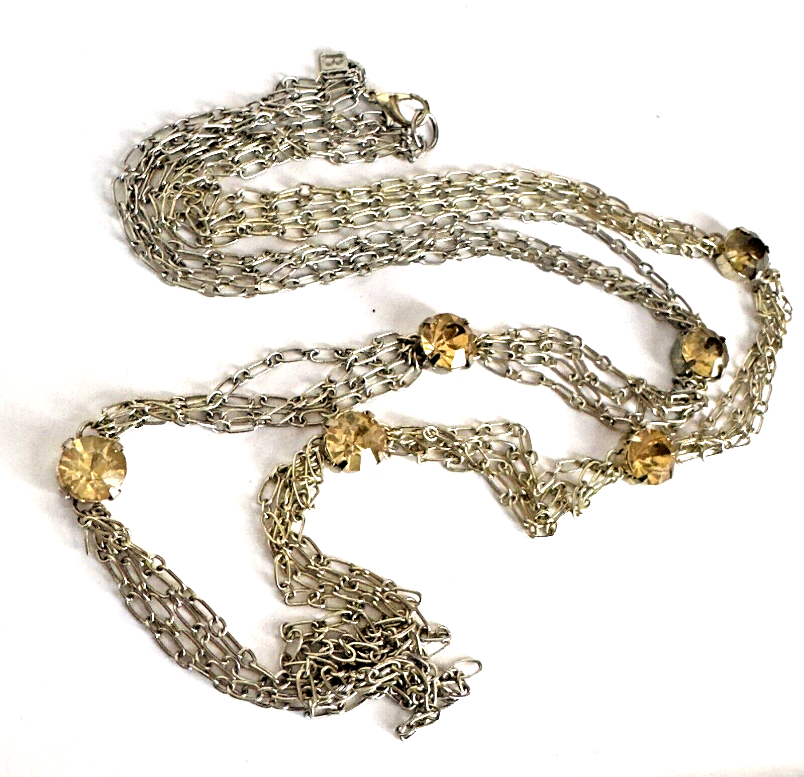 HomeMulti-Strand Silver Necklace with Citrine Stations and Rhinestone Accents, 35" Length, Elegant 3-Chain Design.