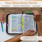Ideal Stationery for Your Bible with No Smear & No Bleed: Smooth gliding Bible/book dry gel highlighters are safe to use on the thinnest of Bible & book pages. The smudge and bleed-proof design ensures a clean highlight on every page as you mark important Scripture verses and references. Set of Five Vibrant Colors: This dependable, non-toxic, quality Bible highlighter set for men, women, children and students includes stunning colors of blue, pink, green, orange, yellow. Vivid and bright transparent colors are great for highlighting text and ensuring easy readability.The cute gel highlighters are also a good tool and accessory for underlining important text. Easy Twist & Glide with Removable Cap: The highlighter pens feature a twistable barrel to extend marker tip for easy use & easily retracts to protect the marker tip. Handy clips are featured on the caps excellent for placing in your shirt and pants pockets, clipping to lanyards, backpacks, pen loops, and more. Perfect for Bible study, school, home, or office. Encouraging Bible Verses. Each individual Bible highlighter offers beloved Scripture reminders printed on its barrel. . As you highlight important Scripture verses or underline in a book, you can be reminded of your faith and be inspired as you read through important text. The highlighters are long-lasting, ensuring a long lifespan. Faith, Hope, & Love: Christian Art Gifts offers a wide variety of personalized Scripture print and faith-based items. From Bible Covers, Coloring Books, Journaling Bibles, Journals, Planners and Devotional Books, the company strives to bring the best quality products with a special message on each and every one. Product Description These Twist & Glide Gel Highlighters slide across paper like butter! The gel highlighters cause NO leaking through the page — just vivid color to accentuate important words! Five non-toxic gel sticks, each with a twist feed motion come packaged in a plastic pouch with a fold-over closure. Their easy-to-hold size means no stressing or cramping of busy hands! Just twist the twist mechanism for continuous gel coverage. Use each color to color code for entries, yellow for cross referencing, blue for Bible verses your want to memorize and, green for highlighting God's promises. The Twist & Glide Gel Highlighter Set includes five beautiful colors, each with a specially selected Scripture verse printed in black on the barrel. Yellow: - I can do everything through Christ - Philippians 4:13 Orange: Be joyful in hope. - Romans 12:12 Green: Take delight in the Lord. - Psalm 37:4 Pink: Love never fails. - 1 Corinthians 13:8 Blue: Rejoice in the Lord always. - Philippians 4:4 Complete your Bible study toolbox with the Twist and Glide 5 Piece Gel Highlighter Set. This gel highlighter set also makes a great gift for kids of any age - younger children can use them to doodle and middle and high schoolers can use them to highlight in their text books. Add a set to a graduation gift for a brand new college student or share a set with a coworker. The Twist and Glide 5 Piece Gel Highlighter Set will be your go-to tool for highlighting. 5 Piece Set Bright Colors: Yellow, Orange, Blue, Green & Pink Non-toxic Twist Motion Pull-off Cap with Pocket Clip Packaged in Plastic Sleeve with Fold-over Closure Highlighter Size: 5.3" x 0.4" x 0.4" (135 x 10 x 10mm) Packaging Size: 5.7" x 2.8" x 0.6" (145 x 71 x 15 mm) Non-toxic & Child-friendly Clean, easy & safe for children to use Encouraging Scripture on every highlighter No-smear & no-bleed Great for School, Home, or Office Great for Bible study Use on textbooks and notebooks Mark important dates on calendars Retractable & Easy Twist Retractable design with easy-twist tip Easy pull-off cap Easily clip to pockets, notebooks, & more Long-lasting Quality Materials Sturdy plastic design Many hours of use Endless uses thanks to five different vibrant colors Share the Gift of Scripture All of our products are inspired by God's Word and offer countless ways to affirm a friendship, encourage a loved one, congratulate a success, or remind someone of their faith. Every Day Faith-inspired Stationery From journals to notebooks to writing paper and envelope sets, Christian Art Gifts offers a wide variety of Scripture stationery to meet your every day needs. Prepare for the work or school day ahead with faith-based ballpoint pens, pocket notepads, portfolios, and more. Proudly Designed In-house in the USA Our team of graphic designers merge contemporary art with Scripture offering a creative approach to faith-based, inspirational gifting for all occasions. Our mission is to bring hope and encouragement to all through each and every product we create. Faith-inspired Gifts for All Occasions Gifts for Special Celebrations Birthdays Graduations Weddings Anniversaries Gifts for Loved Ones Father's Day Mother's Day Grandparent's Day Celebrating Friendship Gifts for Holidays Christmas Valentine's Day Thanksgiving Easter Gifts of Appreciation Pastors & Teachers Faith Leaders Employers Nurses Faith-based Gifts. All Designed in House. Christian Art Gifts has a creative and modern approach for gift ideas including a wide selection of Christian gifts, inspirational gifts, Bibles, Books, journals, planners, Bible covers and more. Our purpose is to celebrate what is good and true through the products we create. Visit the Christian Art Gifts Amazon storefront today for more inspirational gift options.